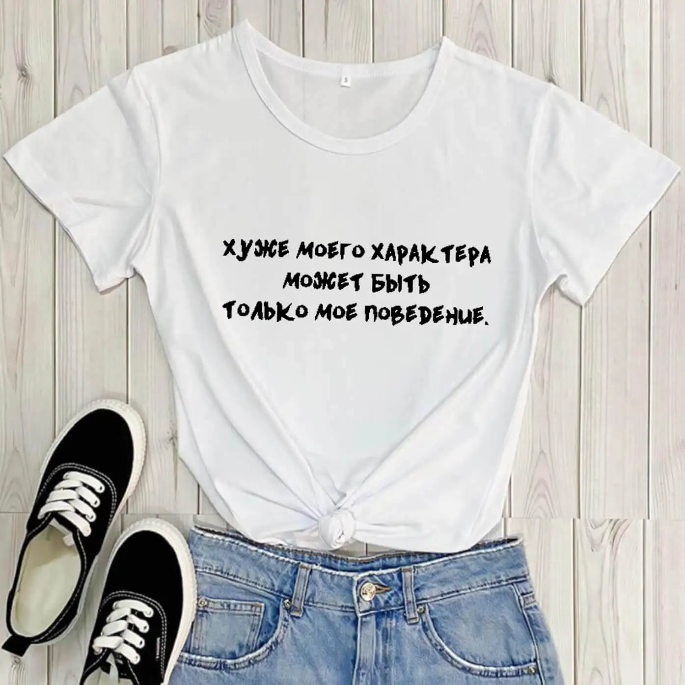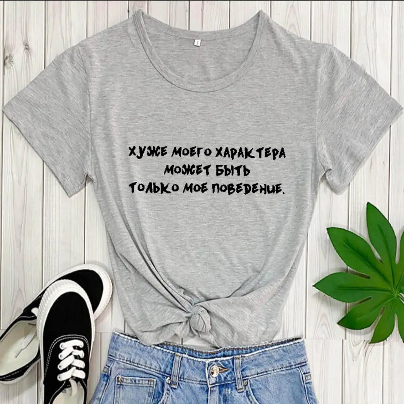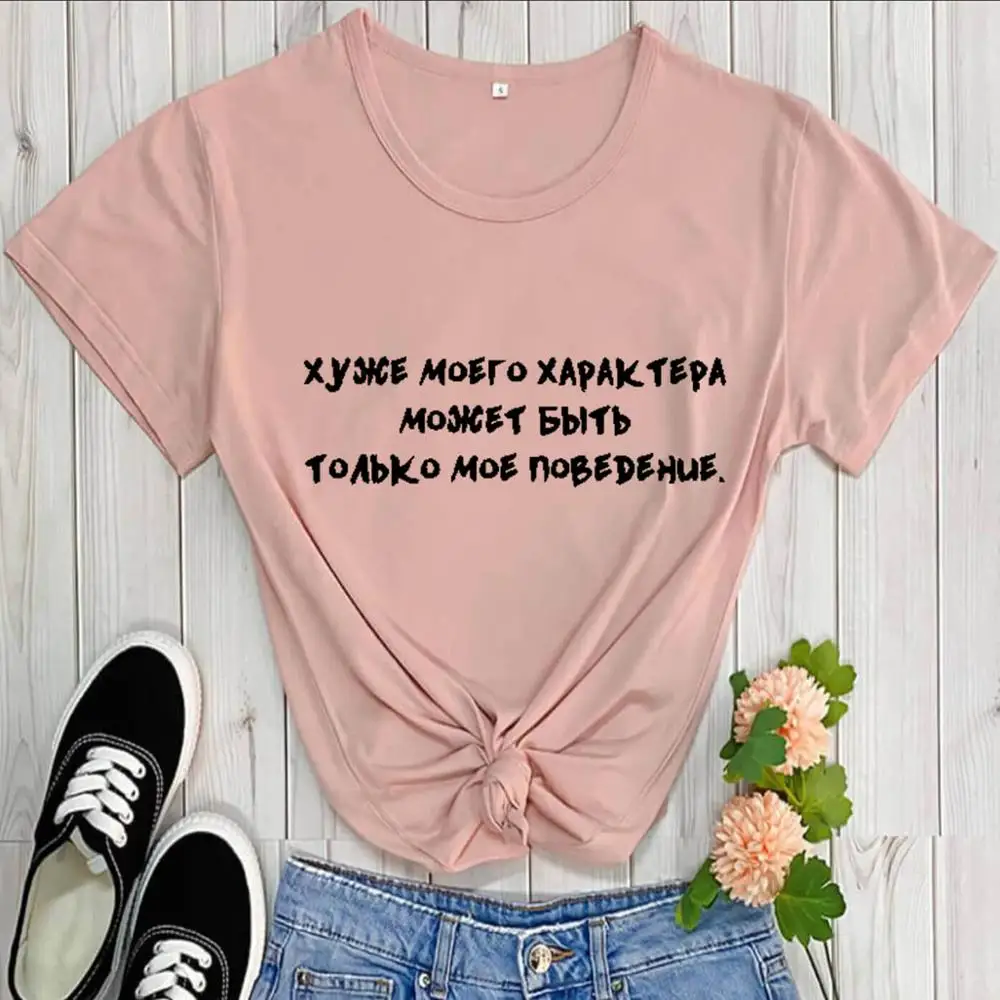Мое поведение русских букв Новое поступление Повседневная забавная футболка из 100% хлопка модные женские топы Прямая поставка