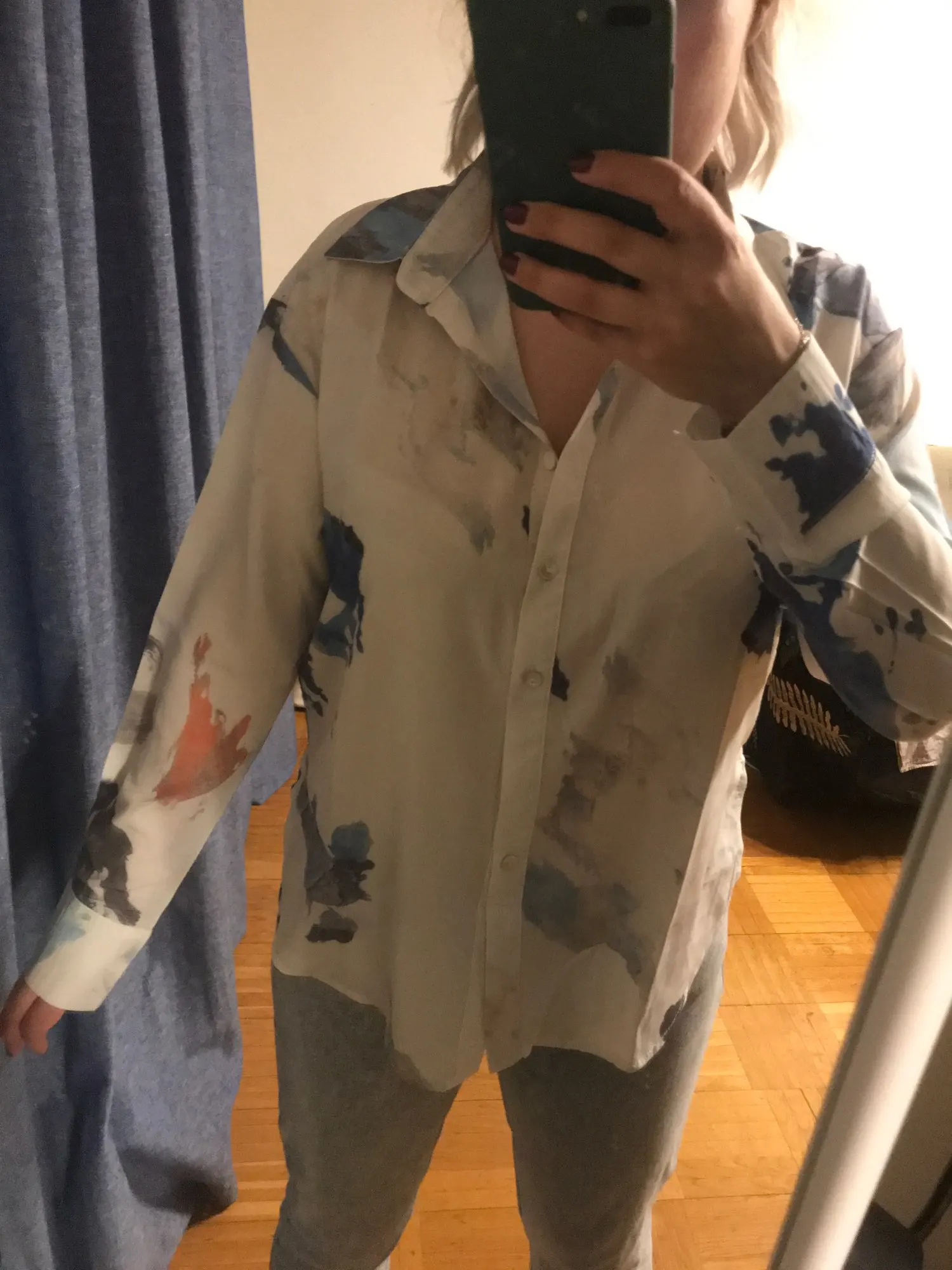 Очень красивая и качественная блузка. Материал очень приятные, шелковистый. Строчки и петли для пуговиц . Красивые пуговицы. Пришла в фирменном пакете. Бирки отсутствуют. Прилетела в Европу очень быстро. Единственное-максимально для ОГ 100 и роста 160 см. Выше коротковата будет