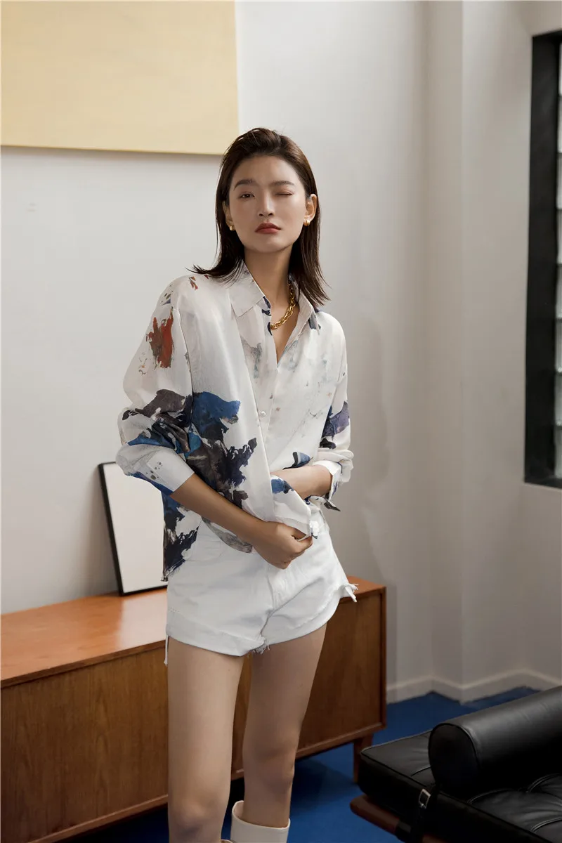 Женская шифоновая блузка CHEERART, белая прозрачная Повседневная рубашка с длинным рукавом в горах и реках, 2020