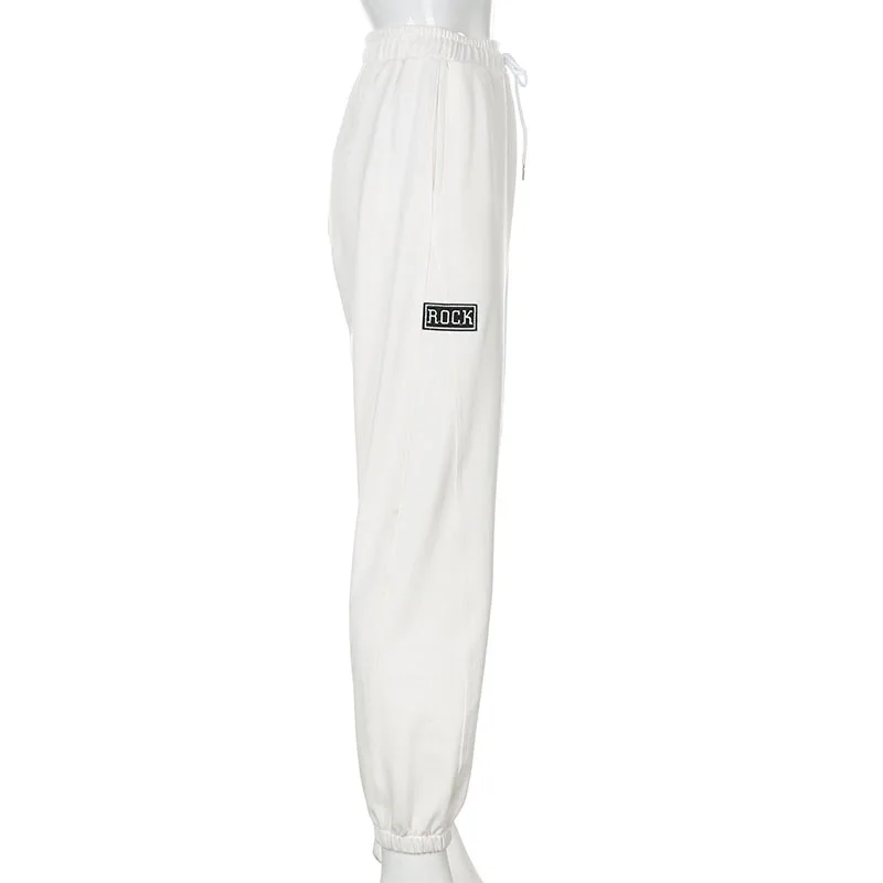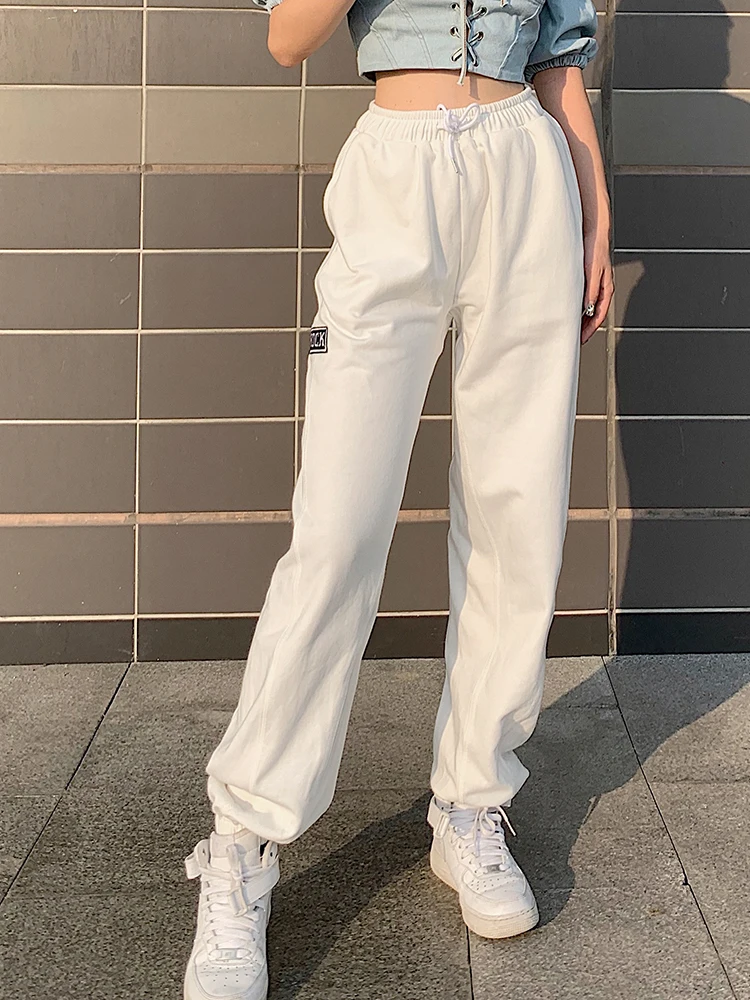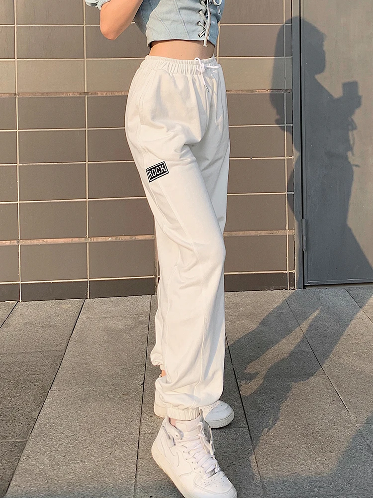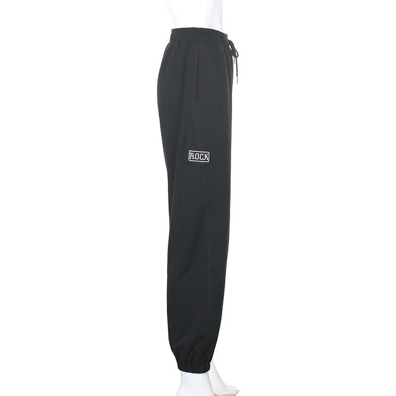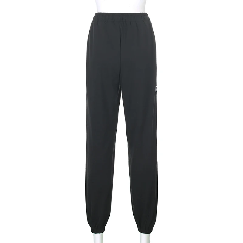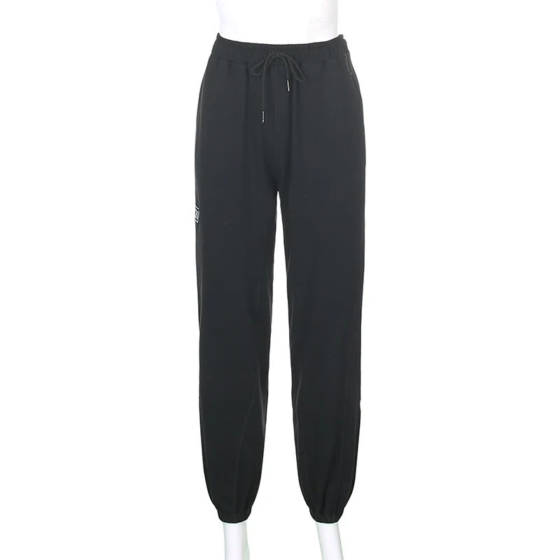 HEYounGIRL вышитые буквы повседневные мешковатые джоггеры женские черные эластичные шаровары с высокой талией капри узкие модные спортивные штаны