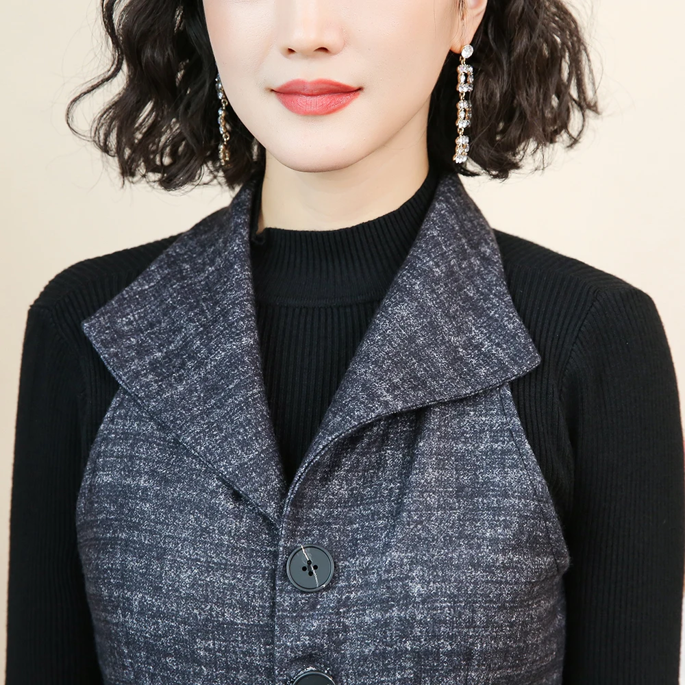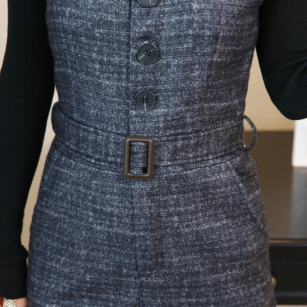 Комбинезон женский шерстяной с поясом, слитный комбинезон с широкими штанинами, свободный Ромпер в клетку с отложным воротником, зима