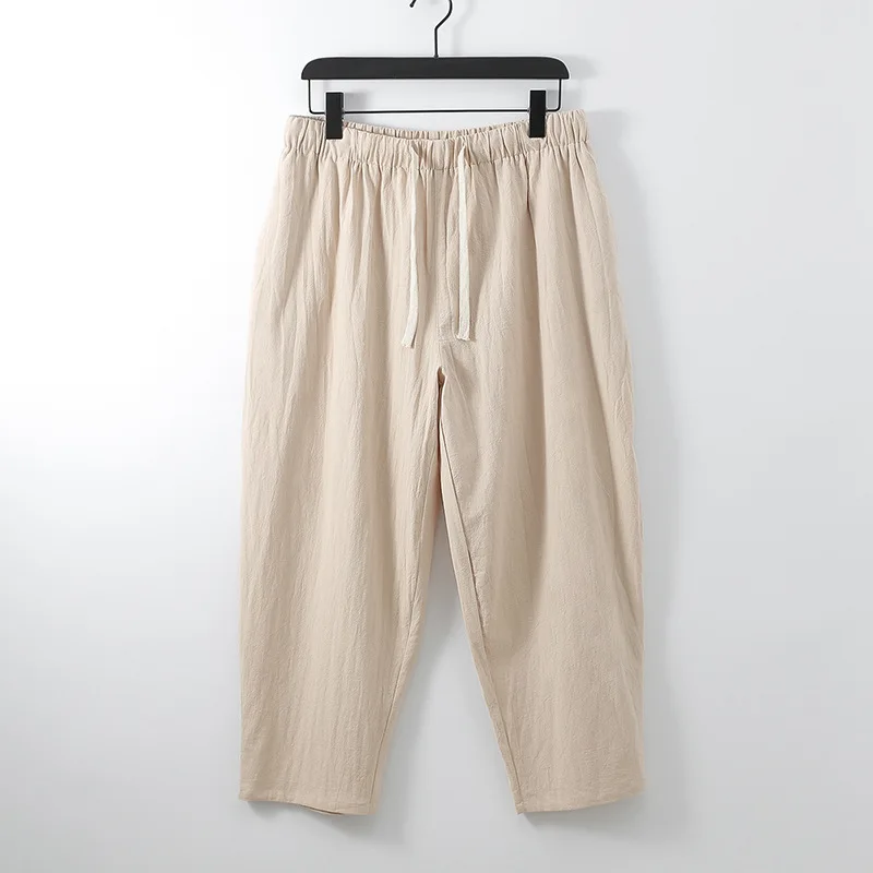 Брюки мужские льняные до щиколотки, свободные прямые штаны, одежда ...