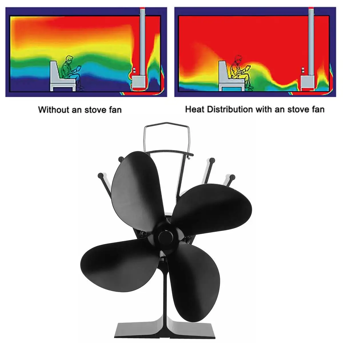 4 лопасти вентилятор для печи, работающий от тепловой энергии горелка экологический вентилятор тихий Домашний Вентилятор для камина эффективное распределение тепла Аксессуары для камина