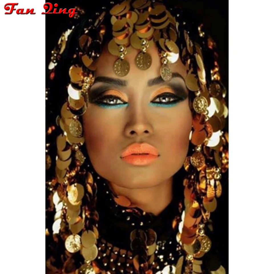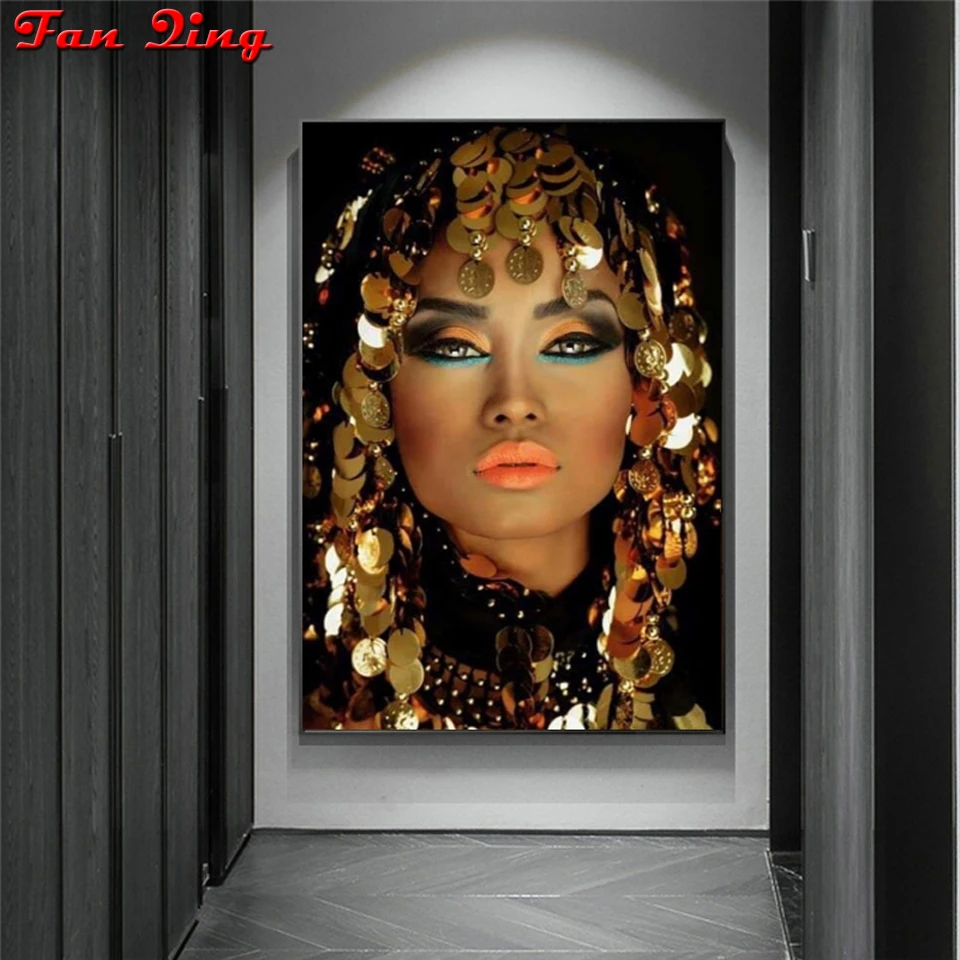 Золотые африканские женские украшения 5D алмазная живопись полный квадрат Алмазная мозаика, стразы Алмазная вышивка крестиком подарок