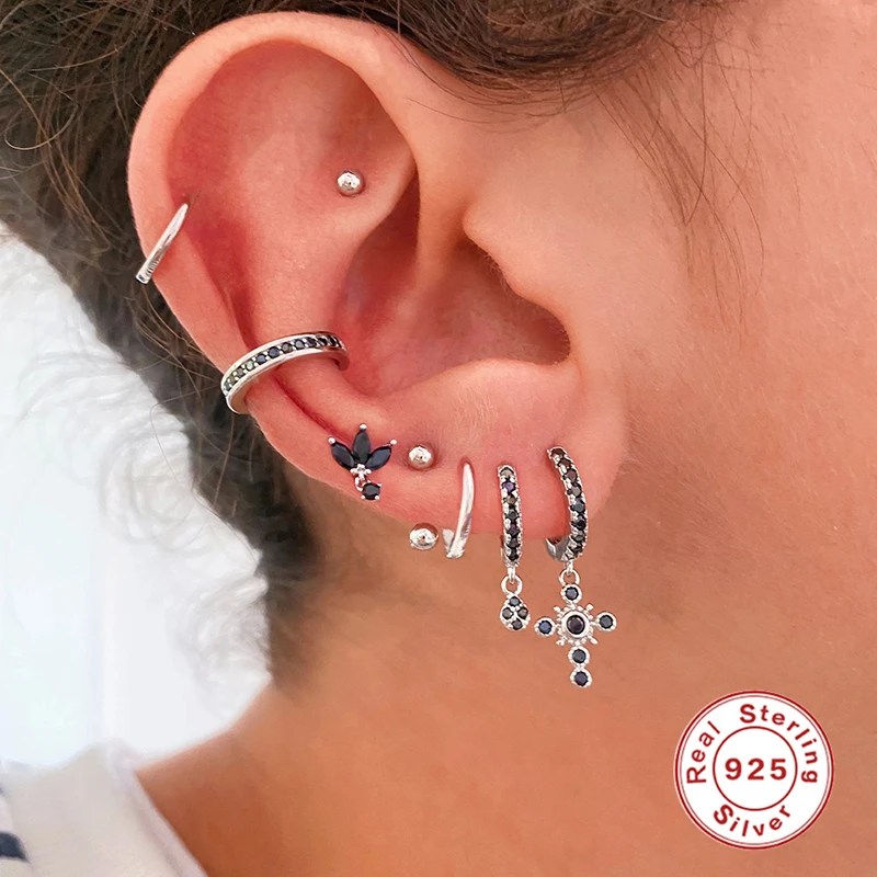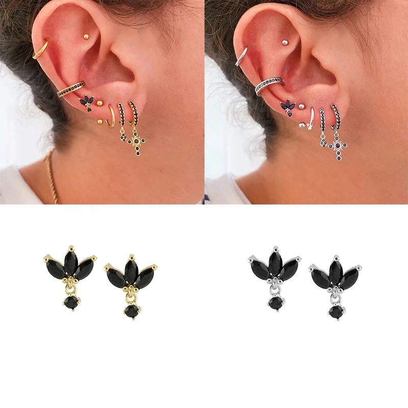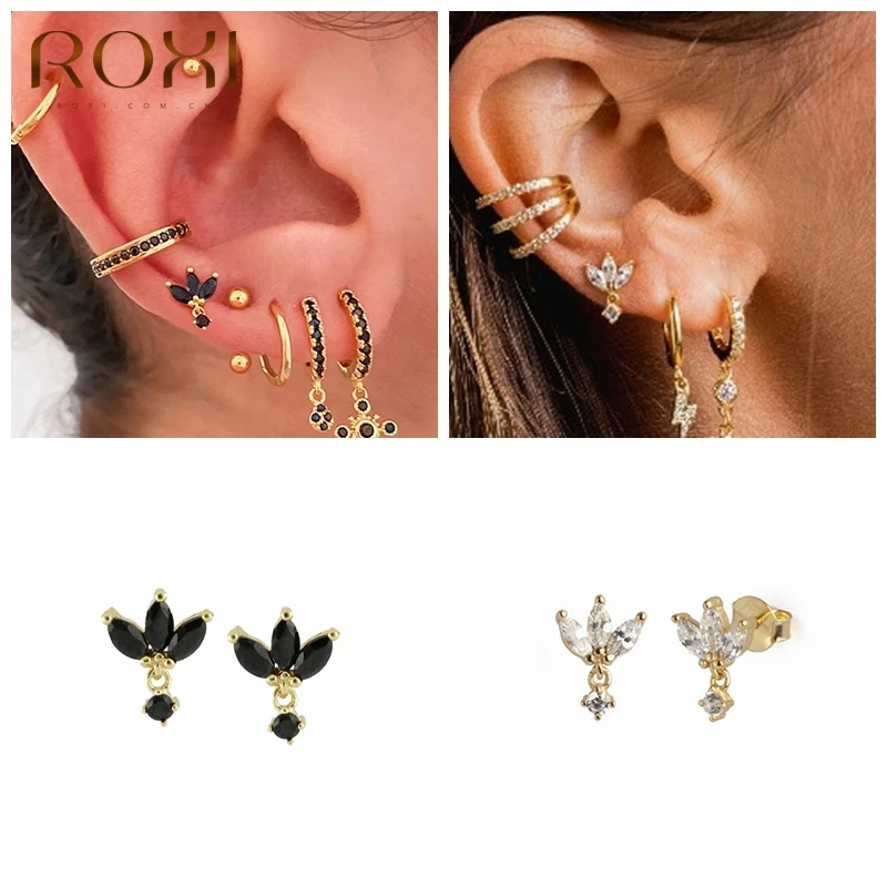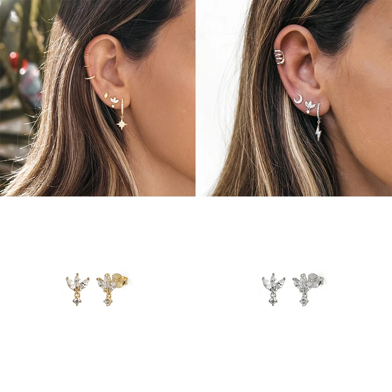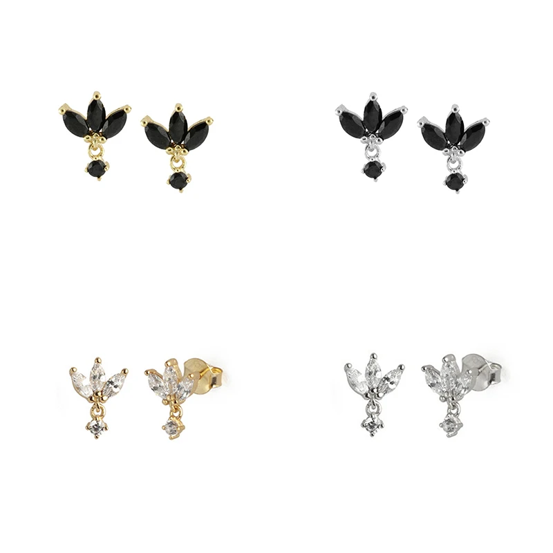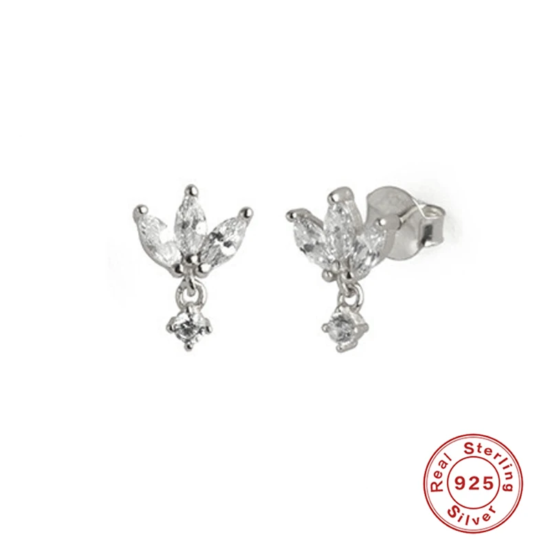 Женские серьги-гвоздики в виде короны и клевера, из серебра 925 пробы