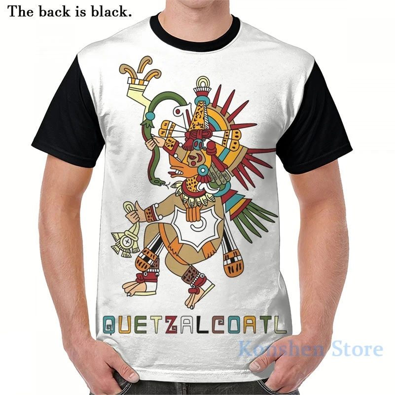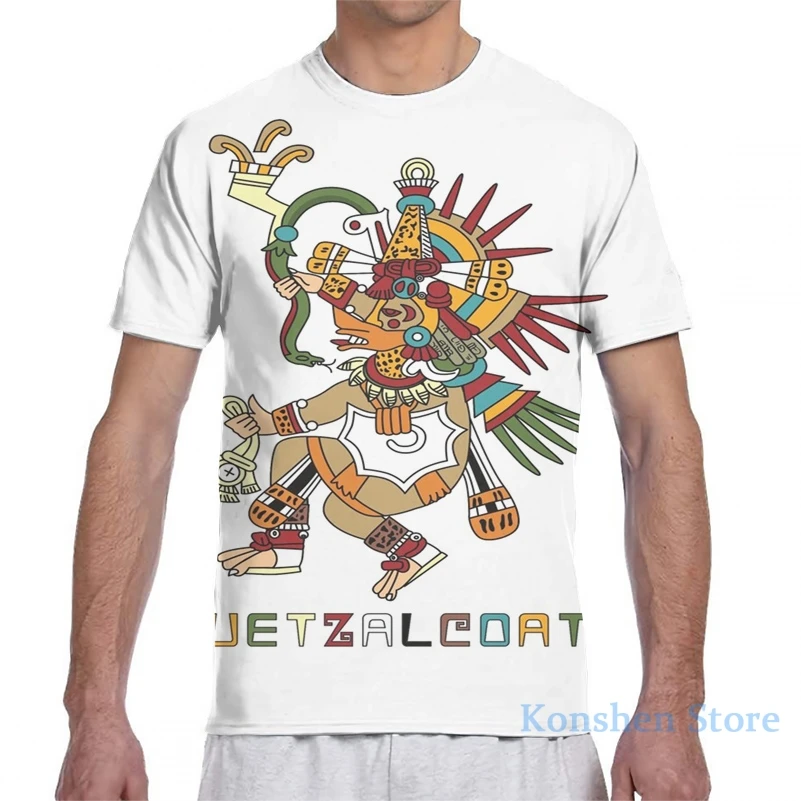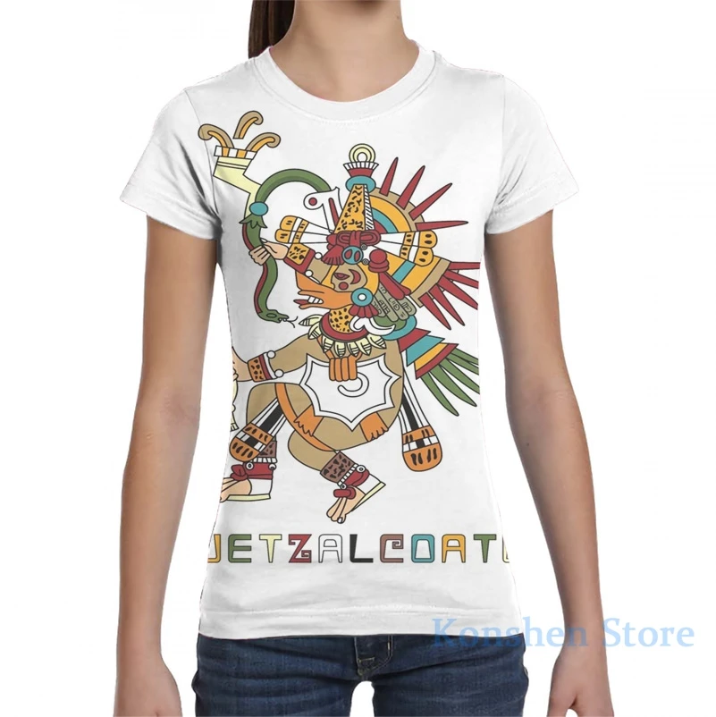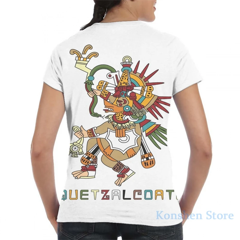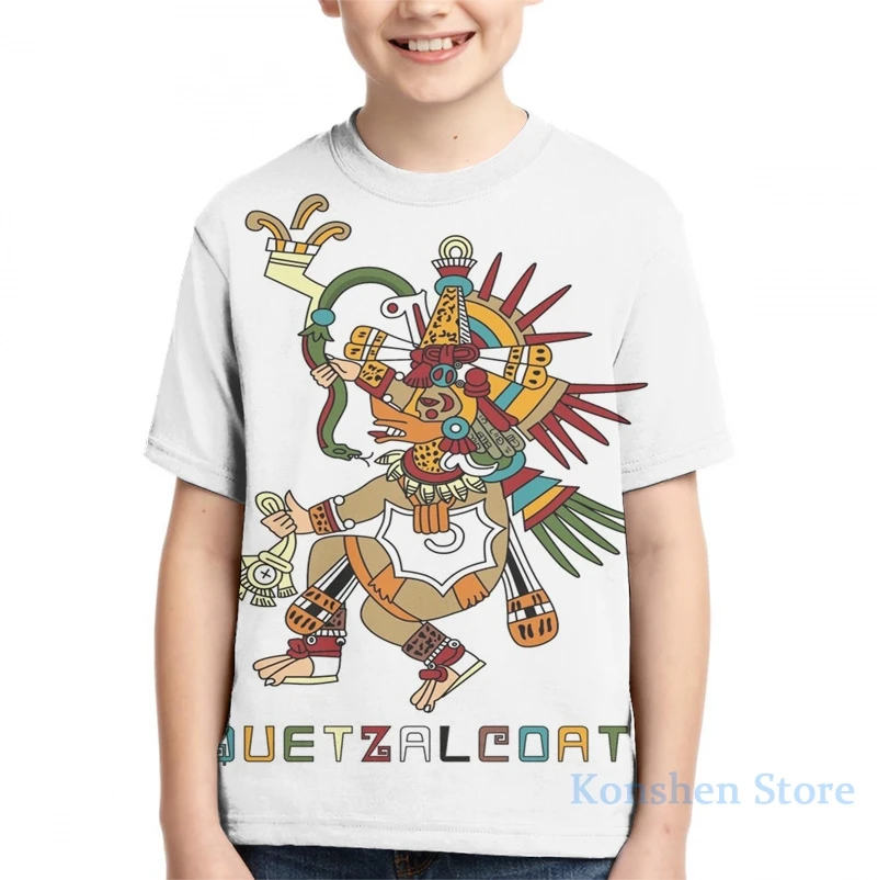 Quetzalcoatl с ацтекским узором Бога Мужская футболка для женщин со сплошным принтом Модная футболка для девочек, топы, футболки для мальчиков футболки с короткими рукавами