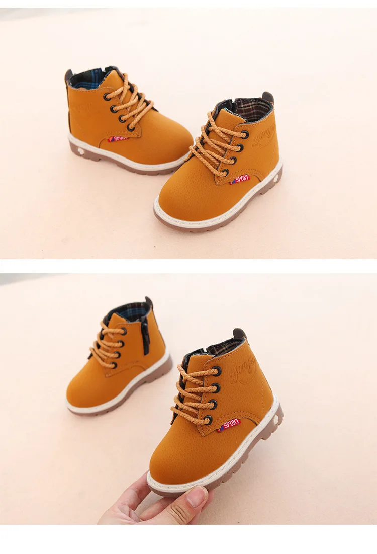 Осенне-зимние детские ботинки Martin; Обувь для мальчиков; Модная повседневная обувь; Кожаные мягкие Нескользящие ботинки для девочек; Спортивная обувь для бега; 21-30