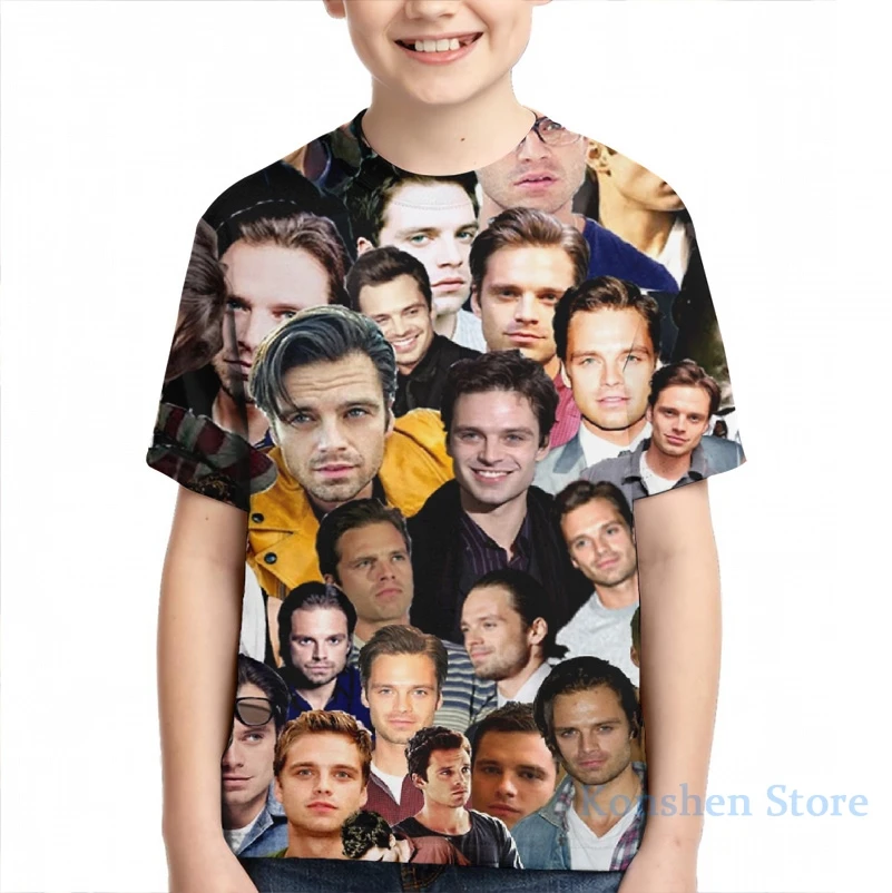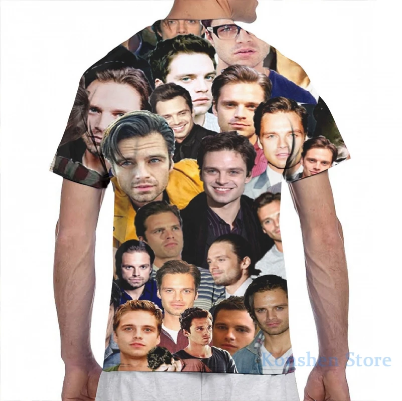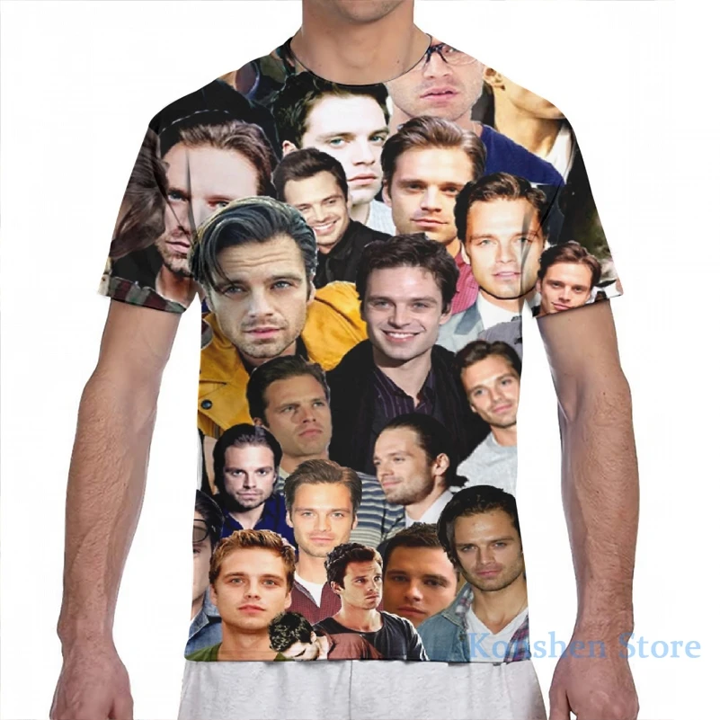 Футболка Себастьян Стэн коллаж для мужчин и женщин с принтом по всему миру, модная футболка для девочек, топы для мальчиков, футболки с коротким рукавом