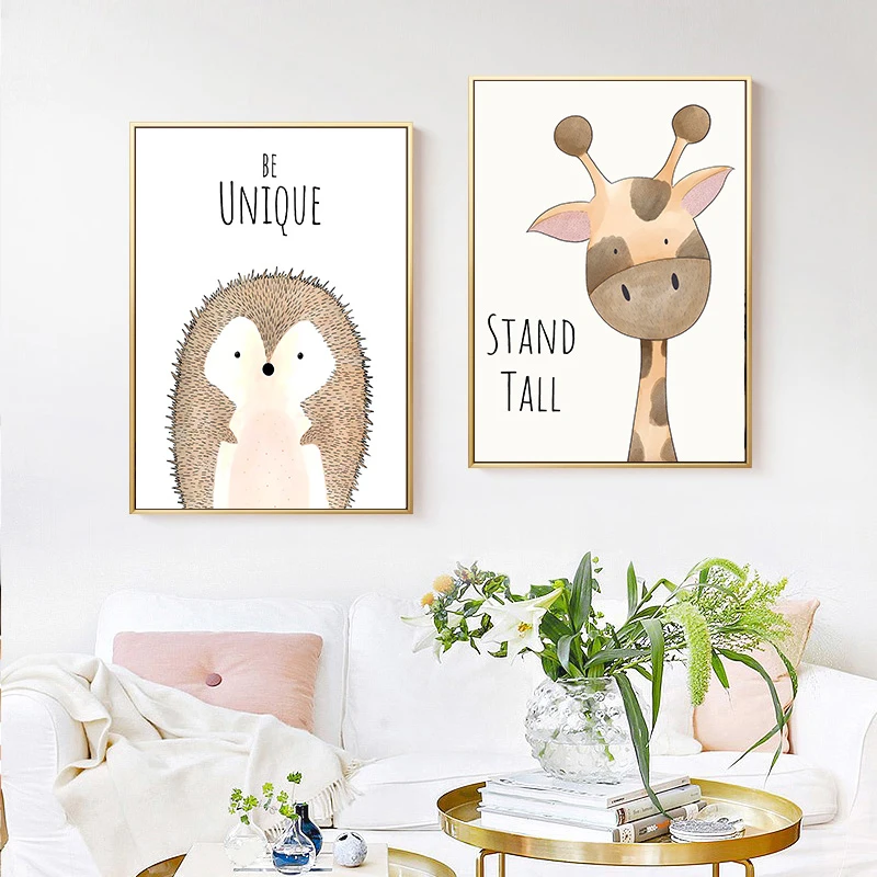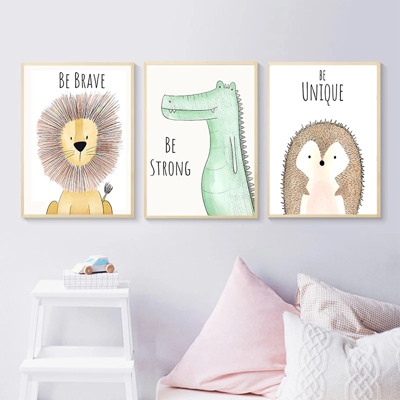 Плакаты с изображениями животных в скандинавском стиле, настенные картины со львом слон для детской комнаты, настенные картины для декора комнаты для маленьких девочек