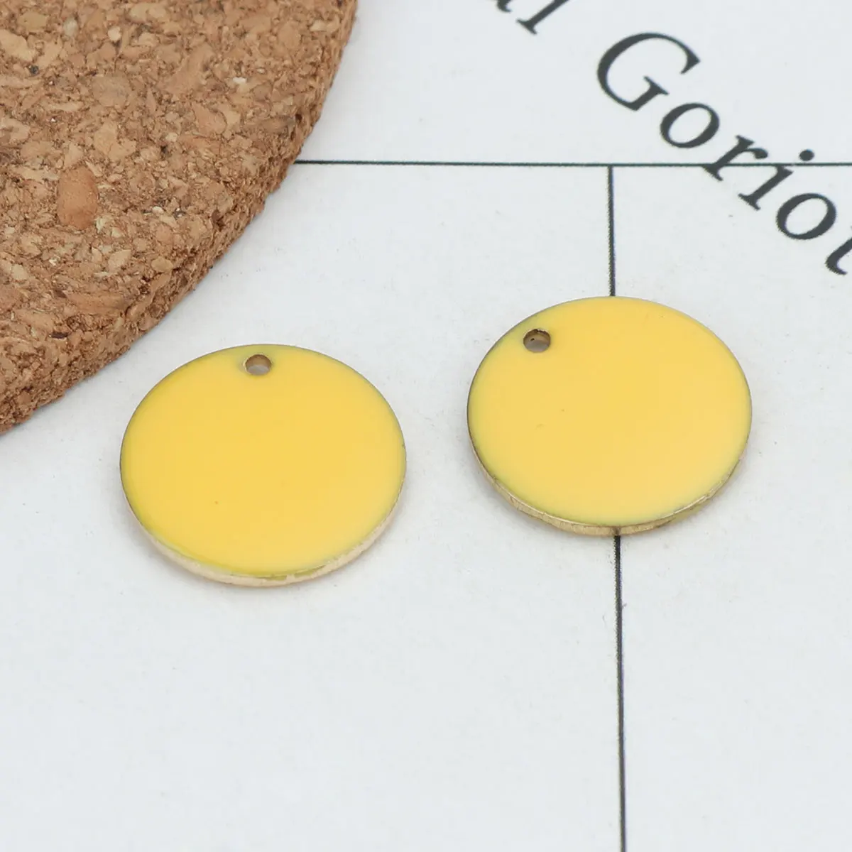 16 мм круглый эмалированный блестки Подвески Медная эмалированная Двусторонняя Подвески золото Цвет для бижутерии, материал для рукоделия, аксессуары, 10 шт.