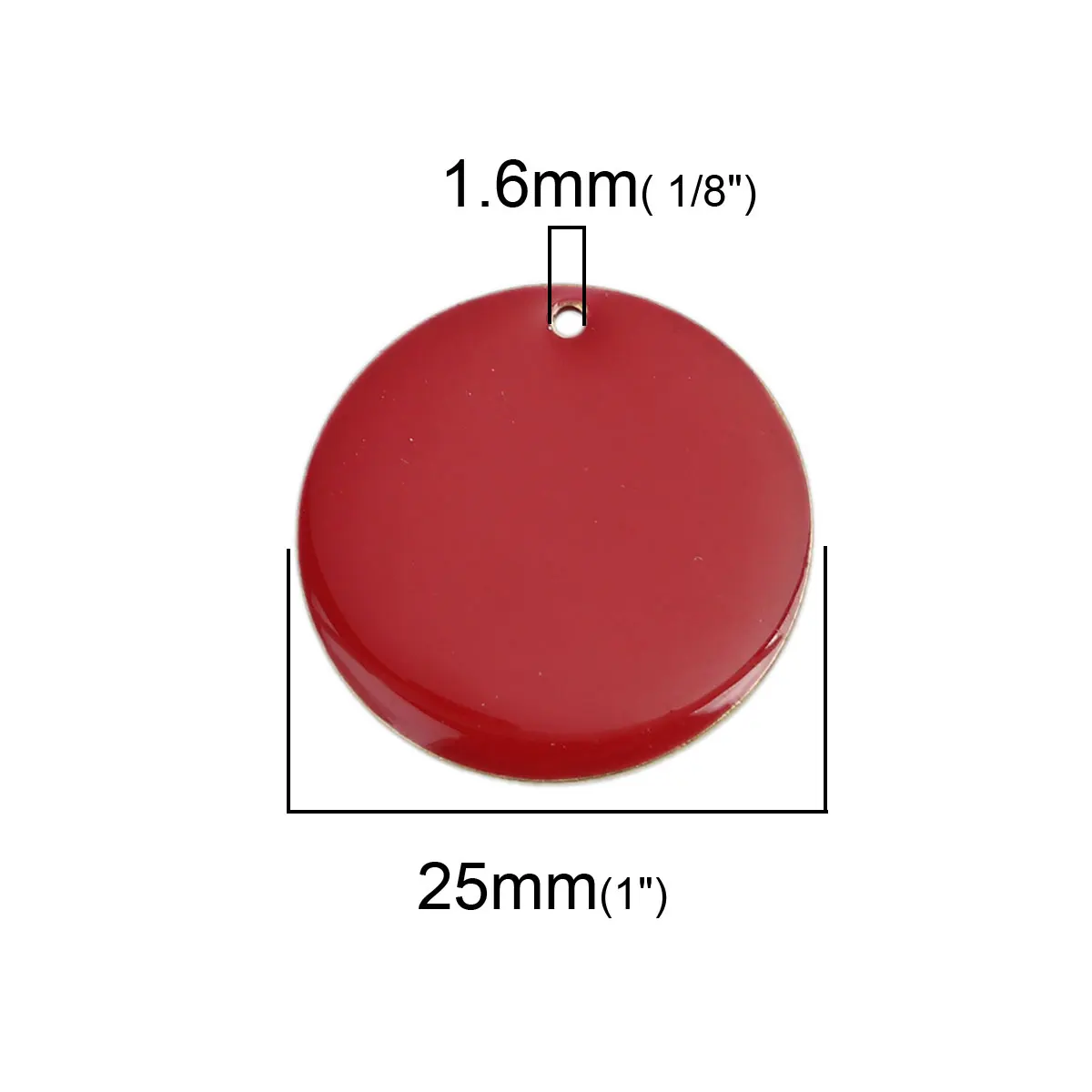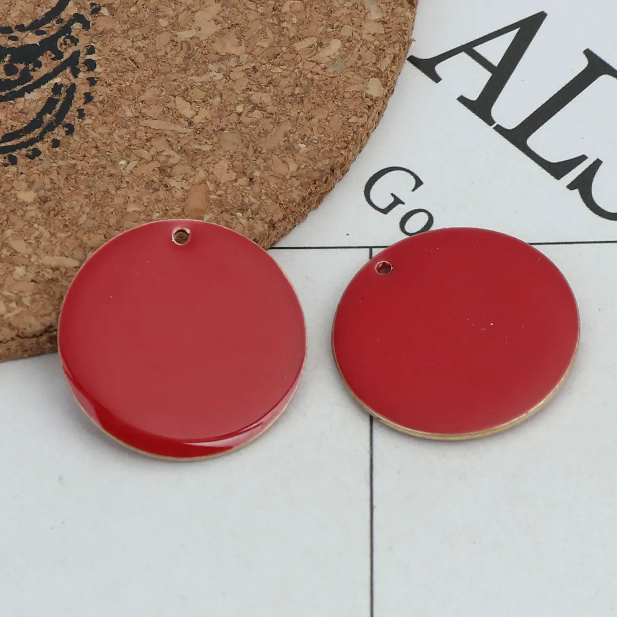 Круглые двусторонние эмалевые подвески 25 мм, медные эмалированные блестки, подвески золотого цвета для ювелирных изделий сделай сам, фурнитура, аксессуары, 5 шт.