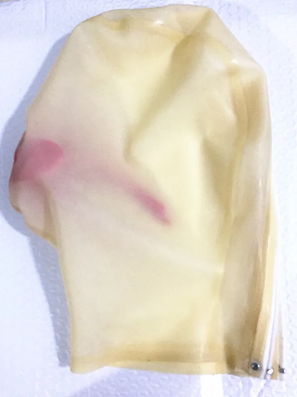 Длинная носовая трубка, латексный капюшон с красными зубцами, кляп и длинные носовые трубки, молния сзади, Фетиш капюшон с закрытым ртом