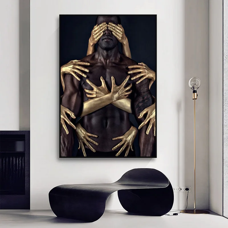Африканское искусство, черный, золотой, обнаженный человек, холст, живопись, современная настенная фотография, холст, картины для гостиной, Настенный декор