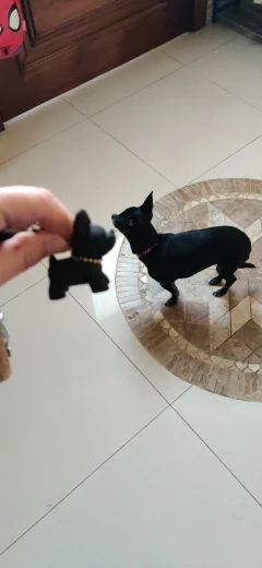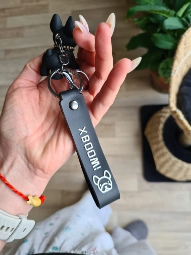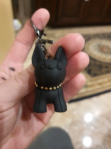 Очень милый брелок. Понравился всем. Размер собаки 5см, ремешка - 7см. На фото смотрится крупнее, чем есть на самом деле.