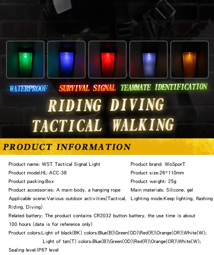 Wosport тактический светодиодный светильник для шлема, комплект для ночной езды, сигнальная панель, водонепроницаемая мигающая Съемная силиконовая защитная лампа для выживания