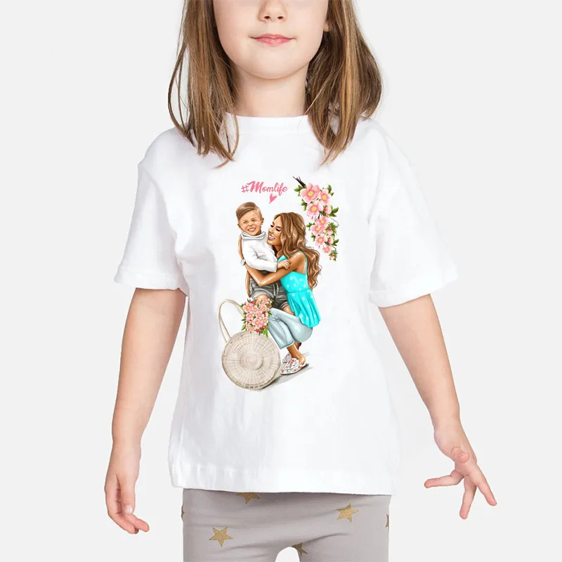 Футболка с коротким рукавом и круглым вырезом для матери и дочери