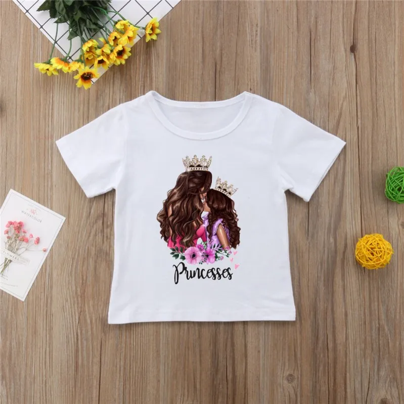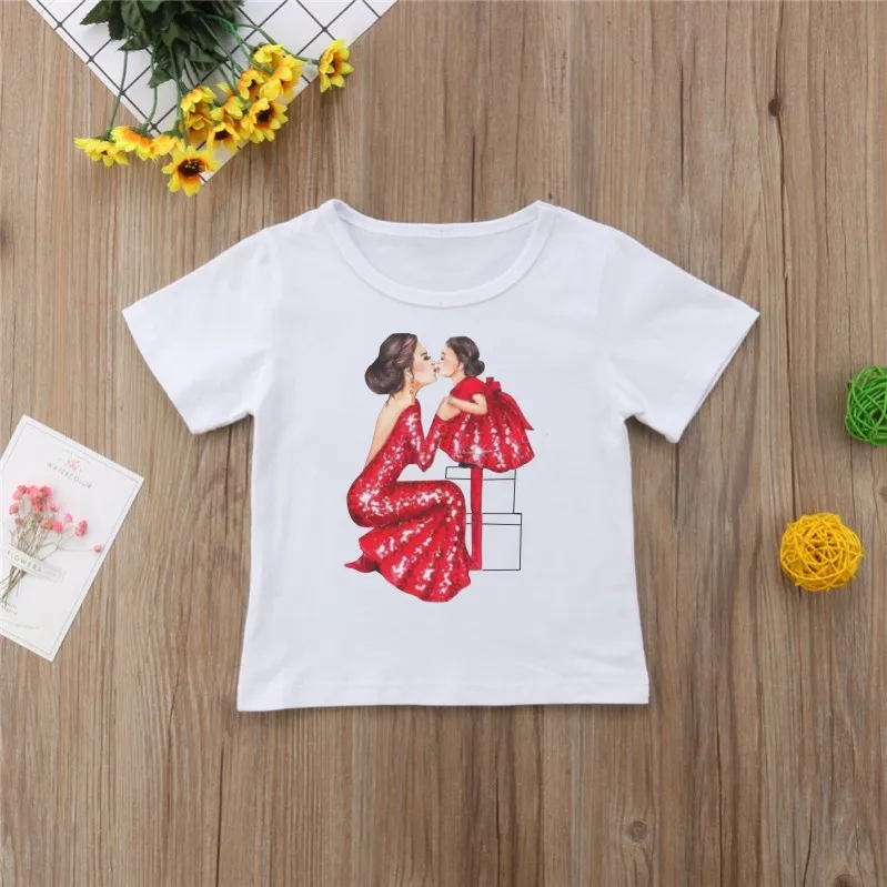 Детские рубашки с принтом для мамы и ребенка, футболка с коротким рукавом для девочек, белые детские топы