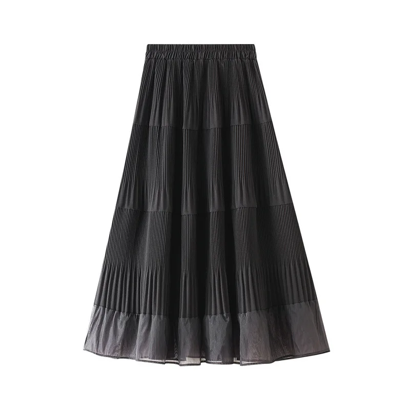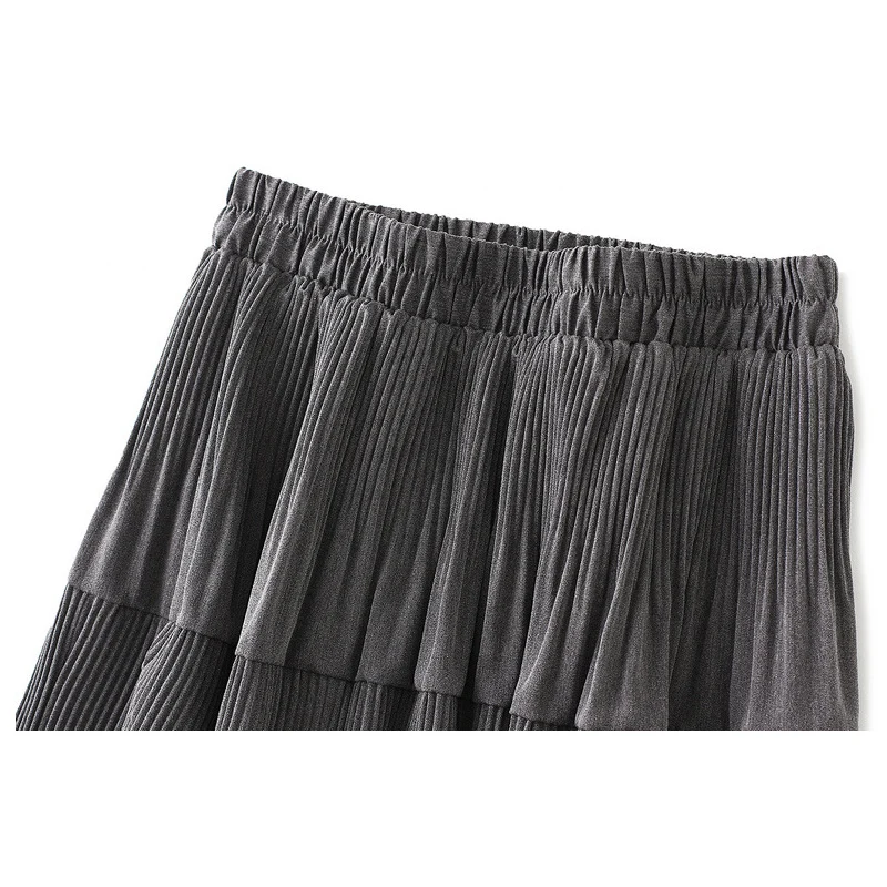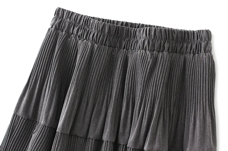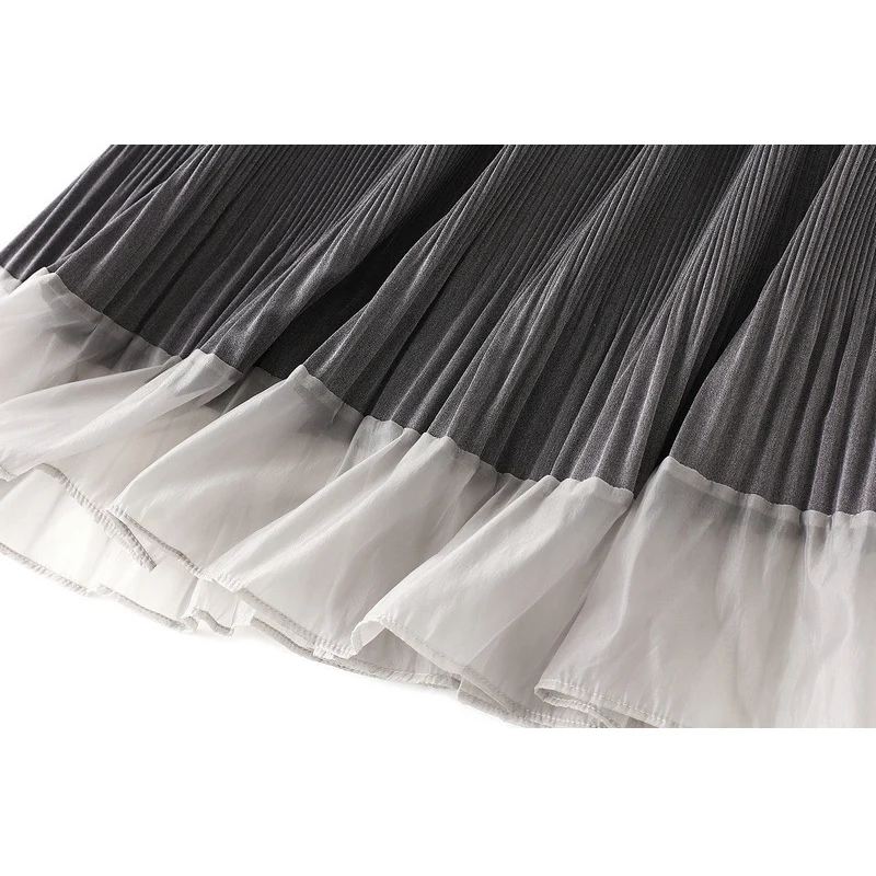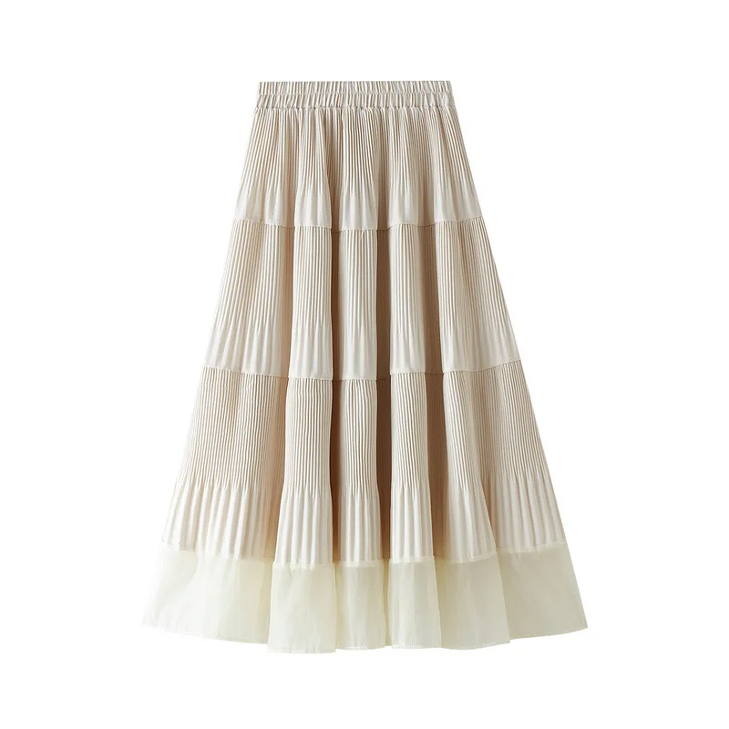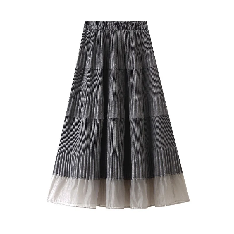 Осенне-зимняя модная плиссированная юбка длинная юбка-трапеция миди OHRYIYIE, корейский стиль, лоскутные, Женская универсальная юбка серого и бежевого цветов