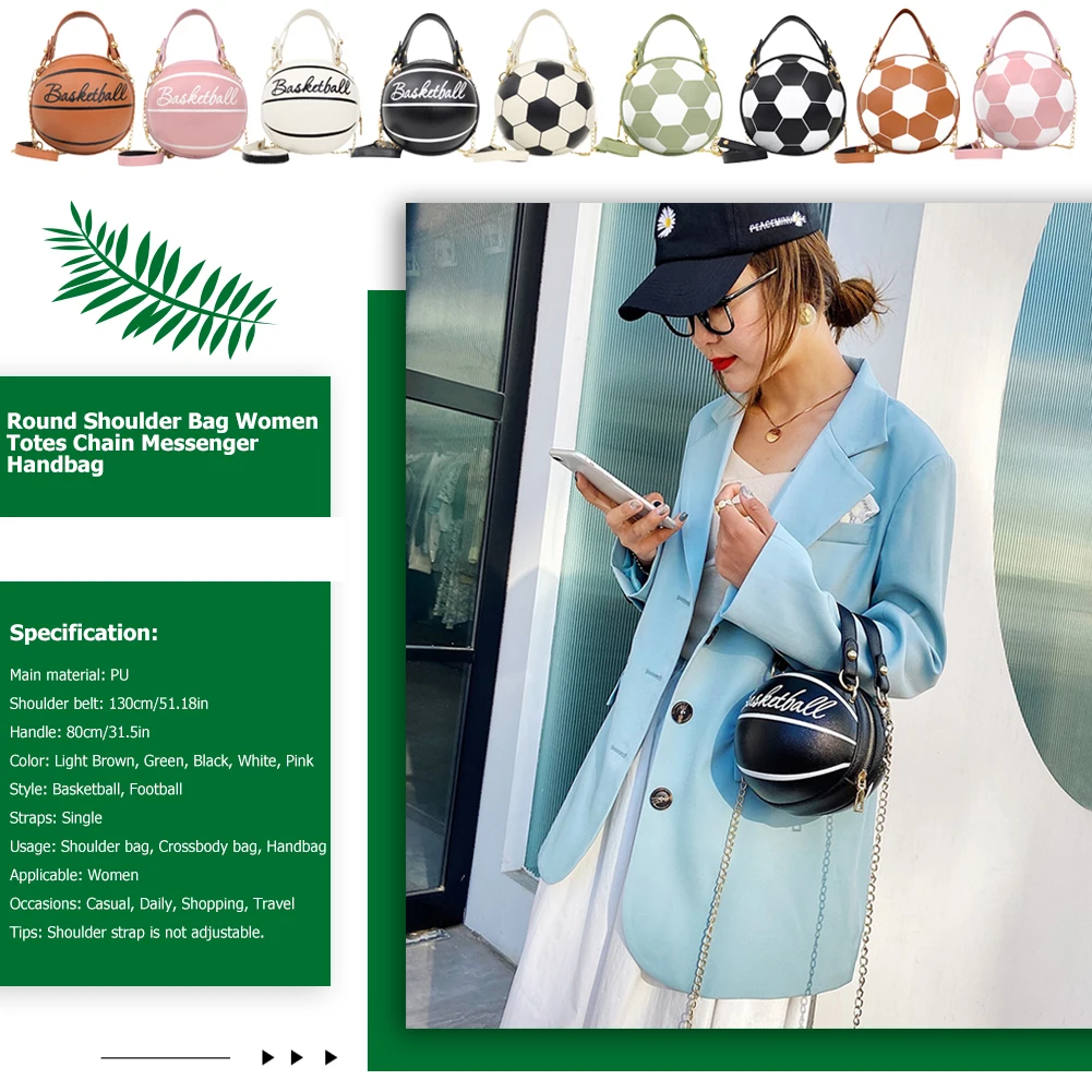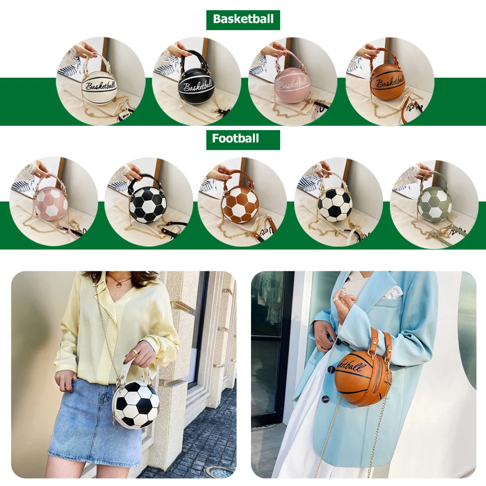 Модные баскетбольные футбольные круглые сумки через плечо для женщин, повседневные сумки на молнии с цепочкой, кошелек из искусственной кожи, сумки через плечо