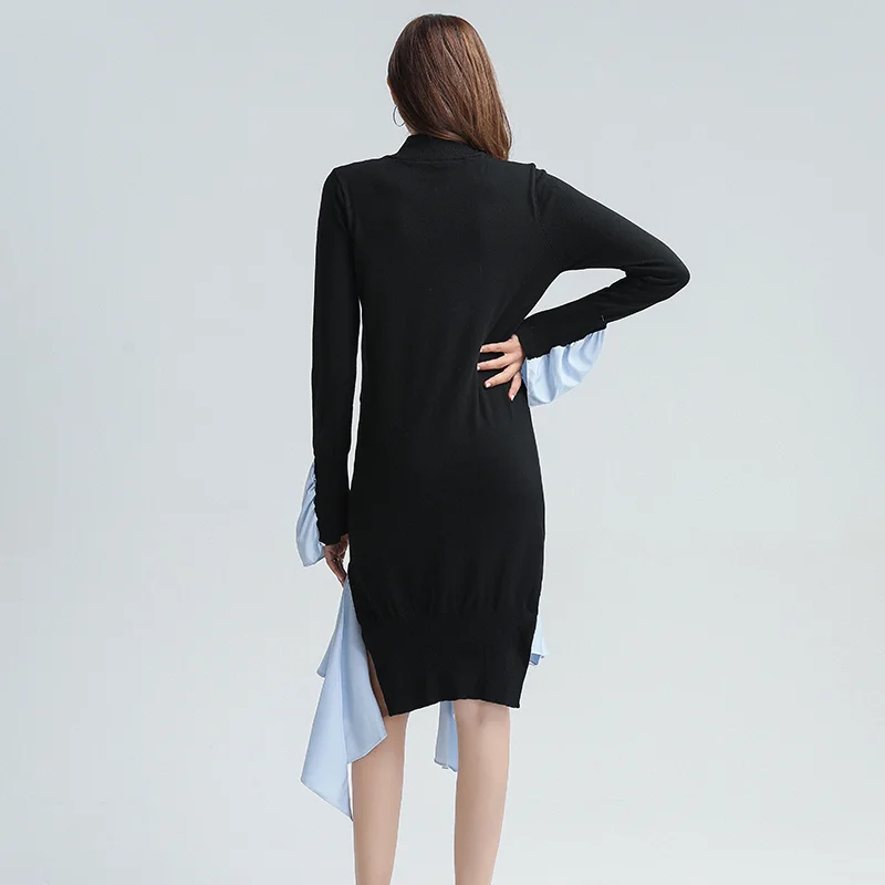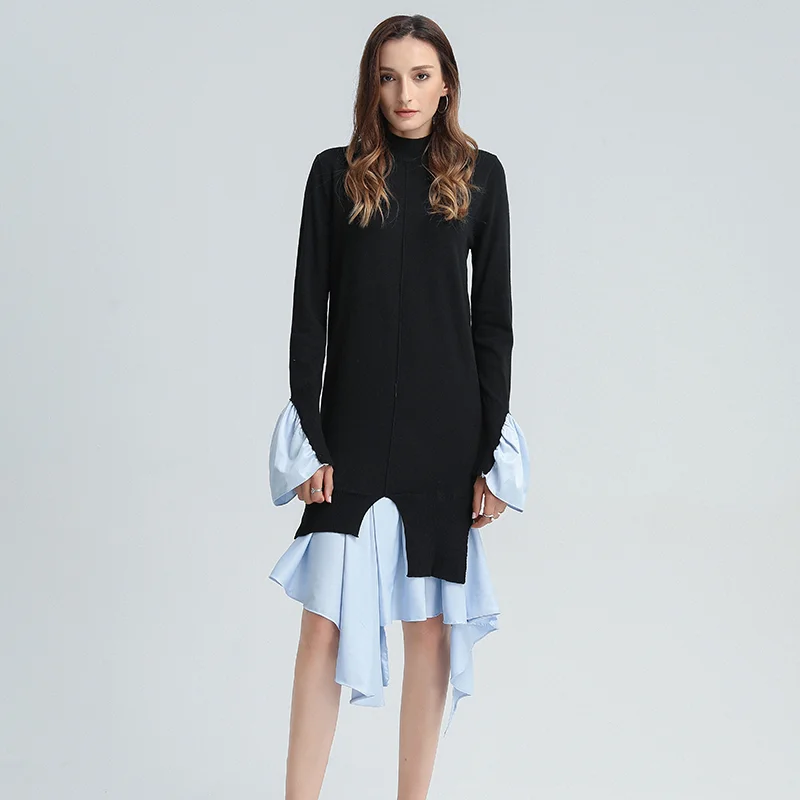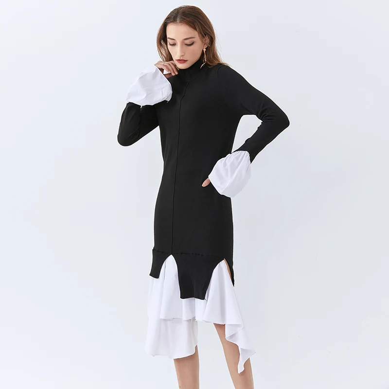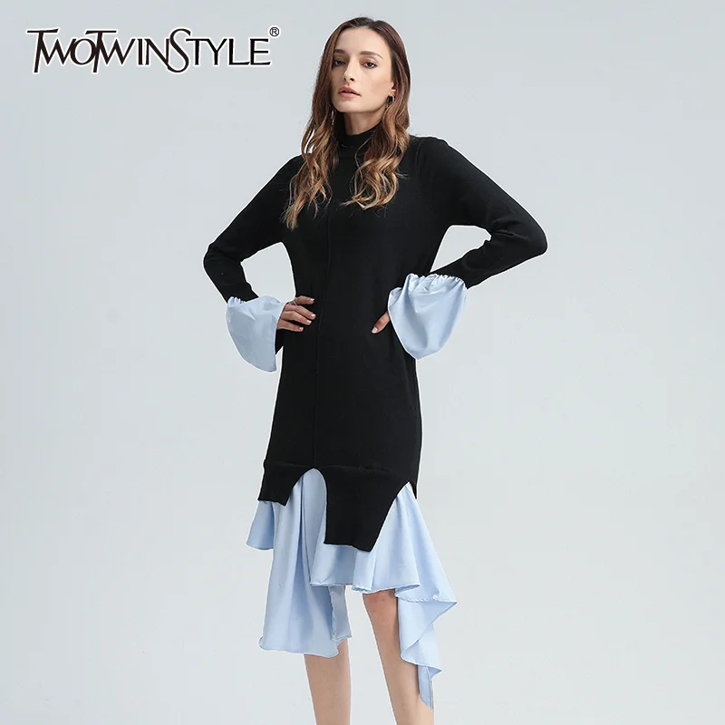 Свитер оверсайз TWOTWINSTYLE для женщин, водолазка, расклешенная, длинный рукав, пэчворк, хитовый цвет, вязаные свитера для женщин, 2022 одежда