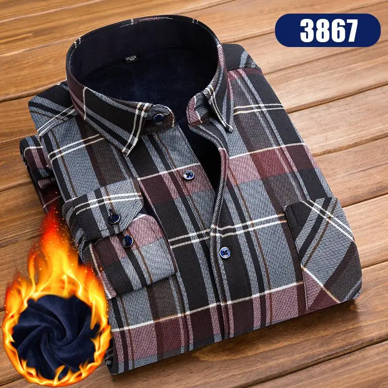 Мужские рубашки с длинным рукавом обычные мужские клетчатые теплые ...