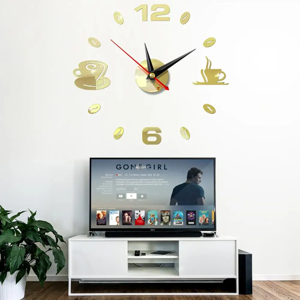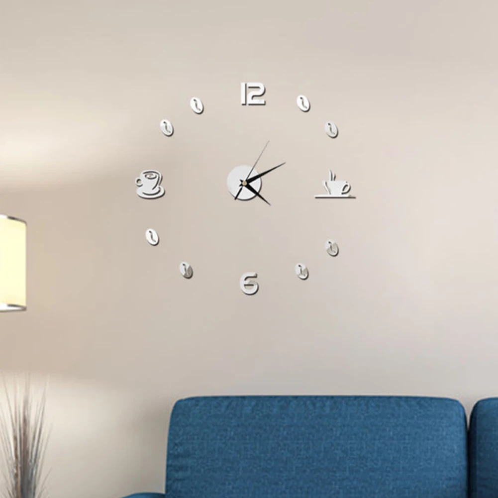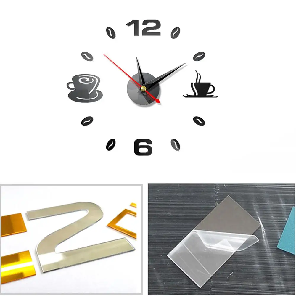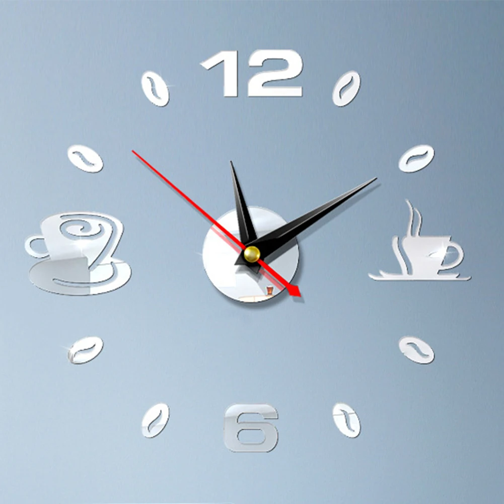 Зеркальные часы 3D, настенные часы сделай сам для кофе, на клейкой основе, бесшумные акриловые, аналоговые, для кухни, домашнего декора