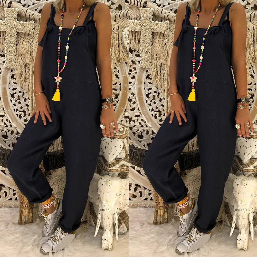 2021 размера плюс комбинезон, цельный комбинезон на подтяжках, Модный женский комбинезон без рукавов, Свободный комбинезон, винтажный комбинезон, Модный Новый