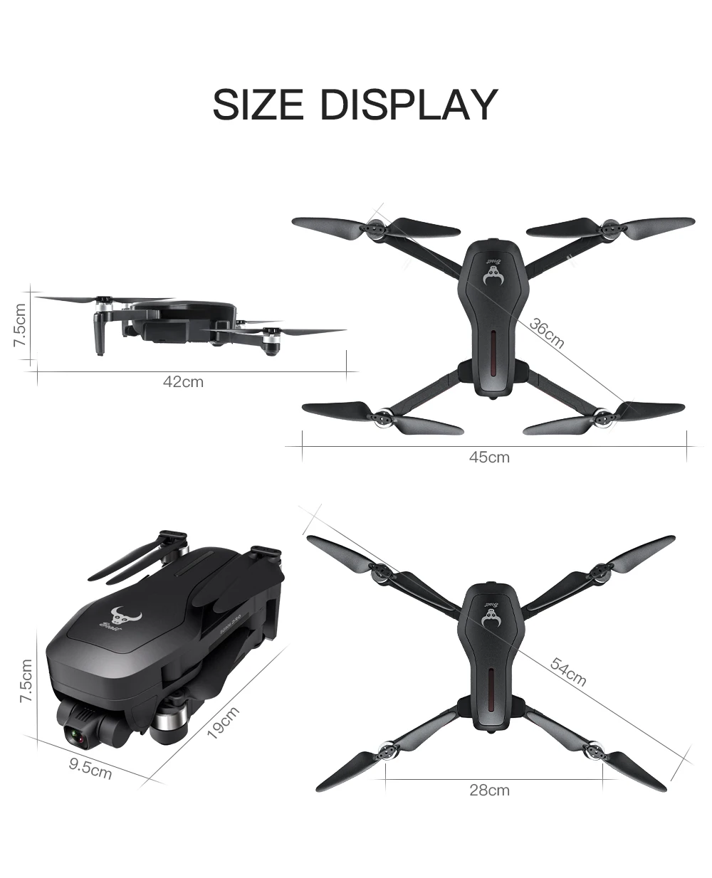 Размер дрона: 28,3x25,3x7 см/11,12x9,94x2,75 дюйма (в разложенном виде) 17,4x8,4x7 см/6,84x3,3x2,75 дюйма (в сложенном виде)