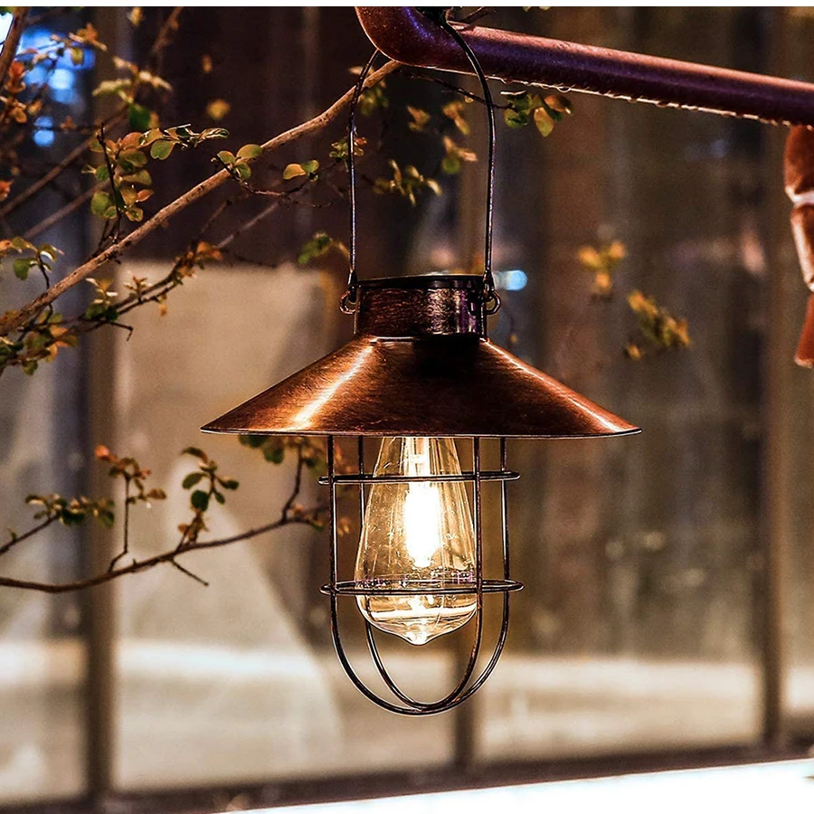 Солнечный фонарь, лампа для улицы, светодиодный подвесной светильник, водонепроницаемый, солнечный садовый свет с вольфрамовой лампой, декоративный для патио, двора