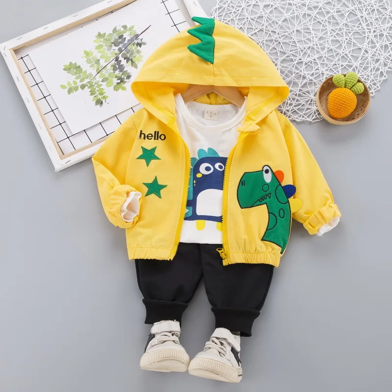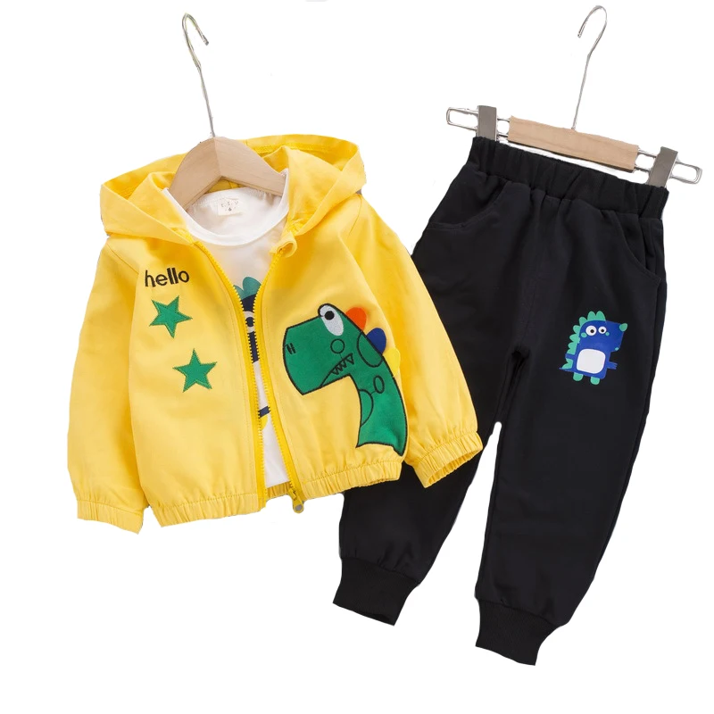 Осенний хлопковый комплект одежда динозавров для детей 70-110 см, пальто с капюшоном + рубашка + штаны, костюм из 3 предметов для мальчиков, рождественский подарок