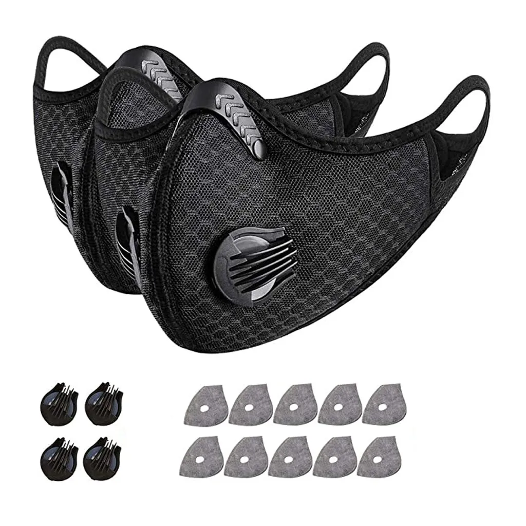 Велоспорт Спорт Facemask с 10 шт фильтры унисекс выхлопные клапаны зажим для носа половина лица маски Моющиеся Многоразовые респиратор повязка