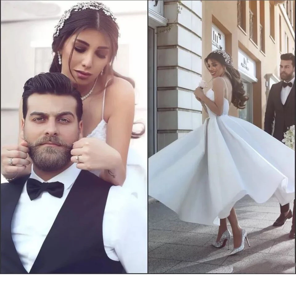 Женское атласное Короткое свадебное платье, элегантное атласное пла...