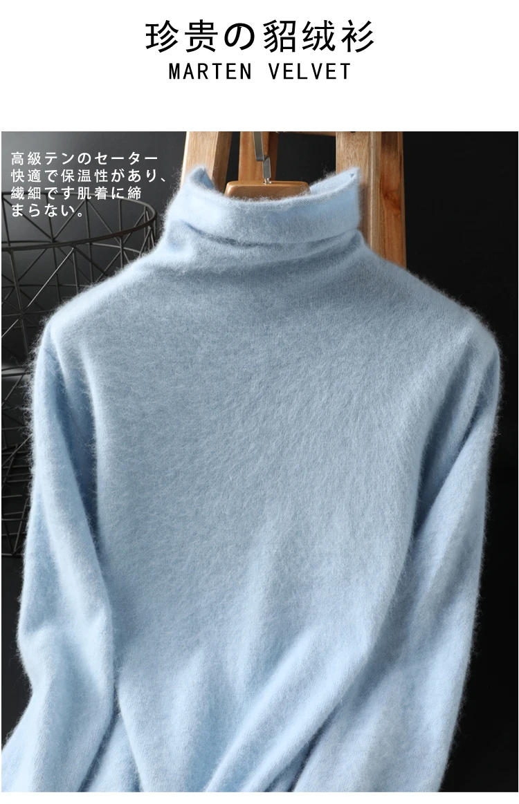 Свитер женский кашемировый, из 100% чистой норки, короткий, зимний, большого размера, вязаный, плотный, с высоким воротником, 2021