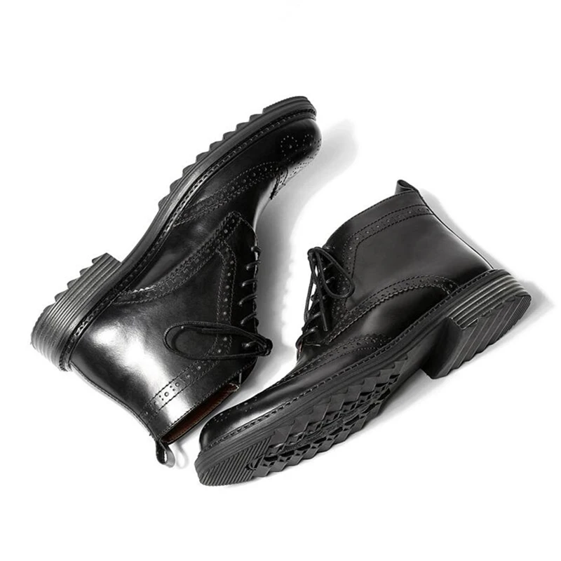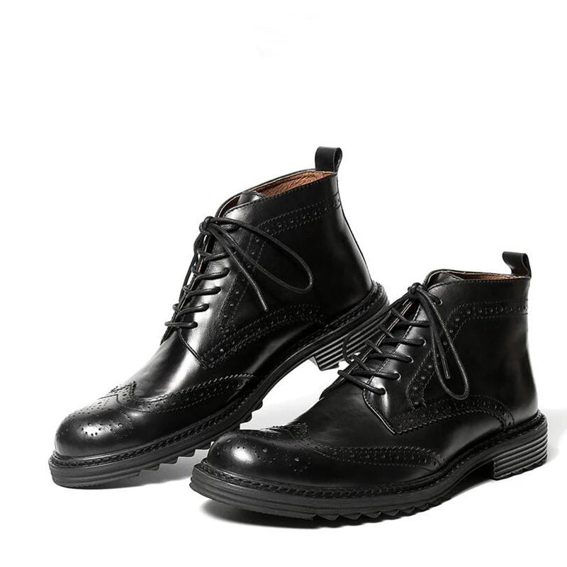 Мужские ботинки из натуральной кожи на шнуровке, с круглым носком