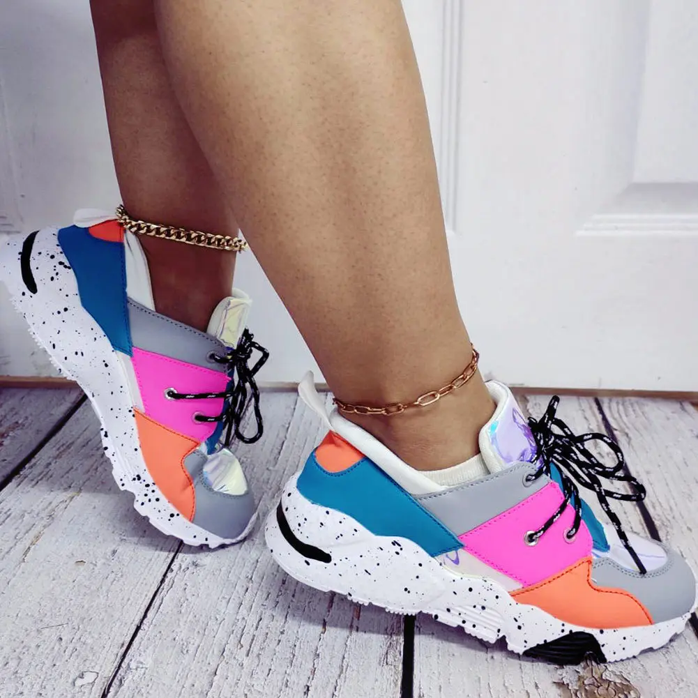 Женские кроссовки 2020, осенняя повседневная обувь, модная спортивная обувь контрастных цветов с леопардовым принтом, женские массивные кроссовки, женская обувь на платформе