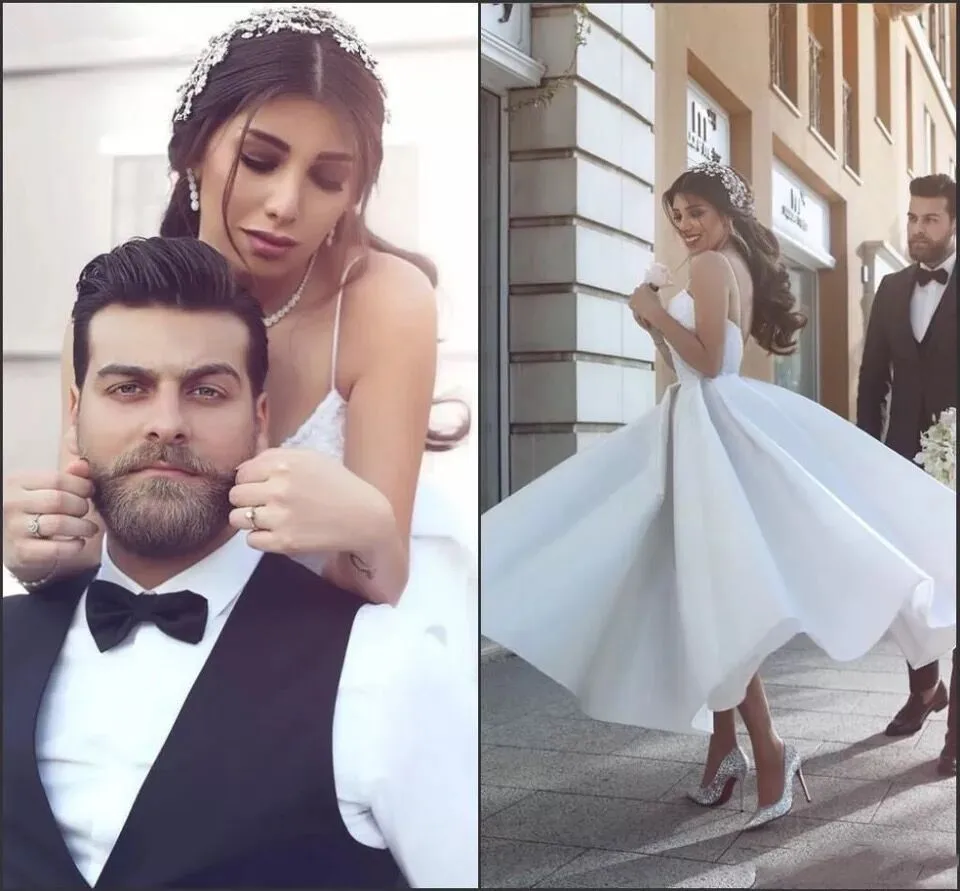 Женское атласное Короткое свадебное платье E JUE SHUNG, белое недорогие свадебные платья платье невесты на тонких бретелях с открытой спиной, 2020