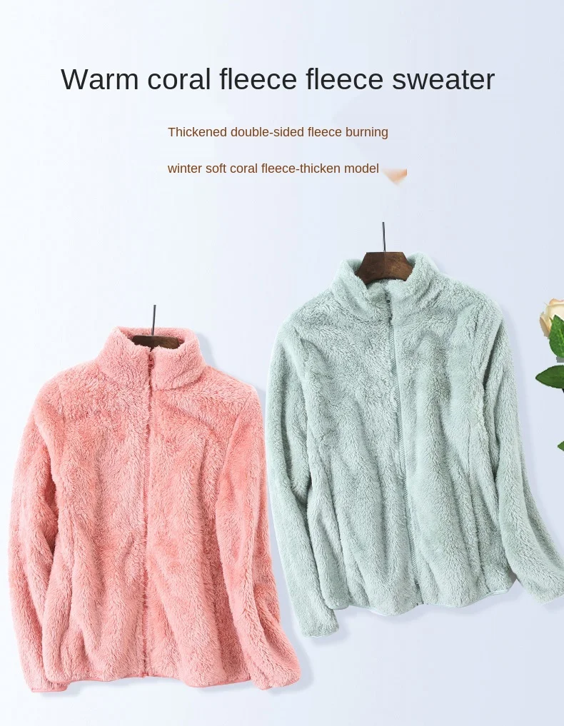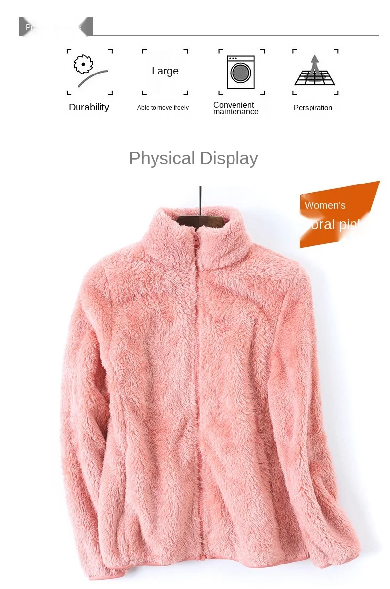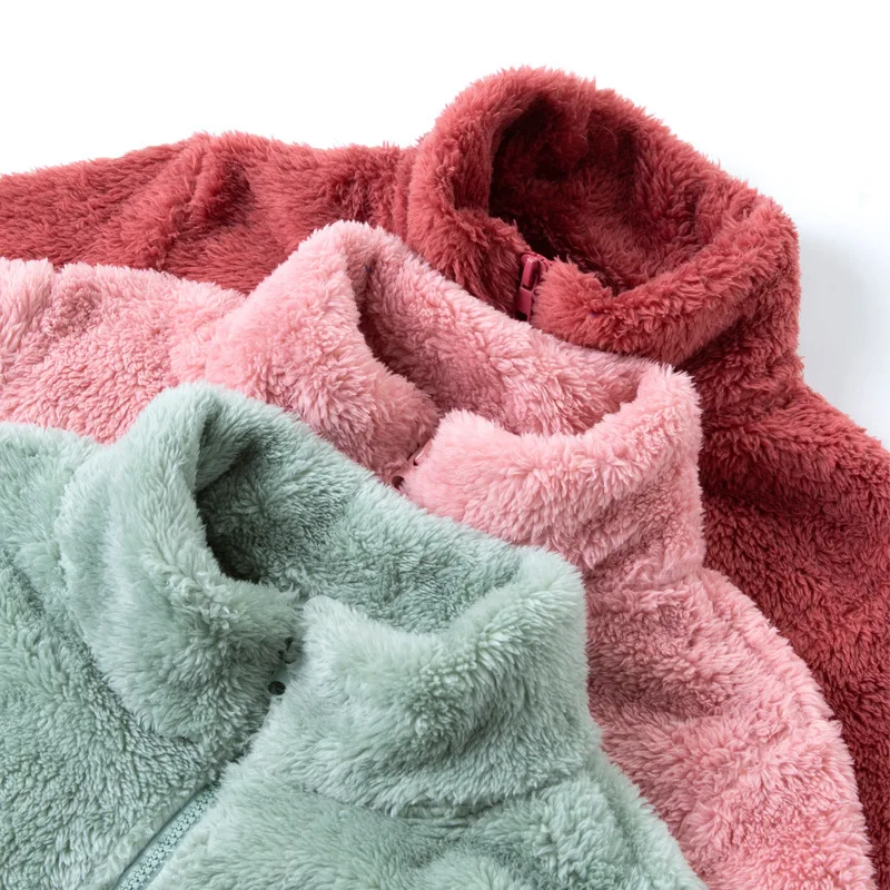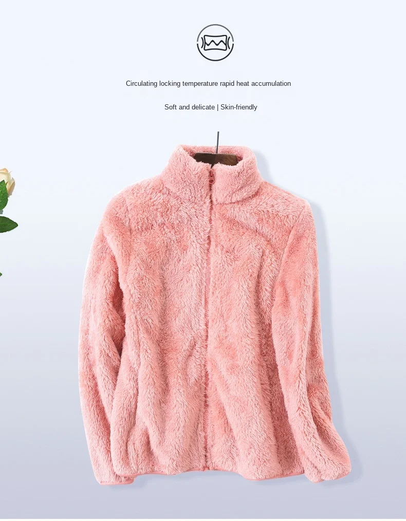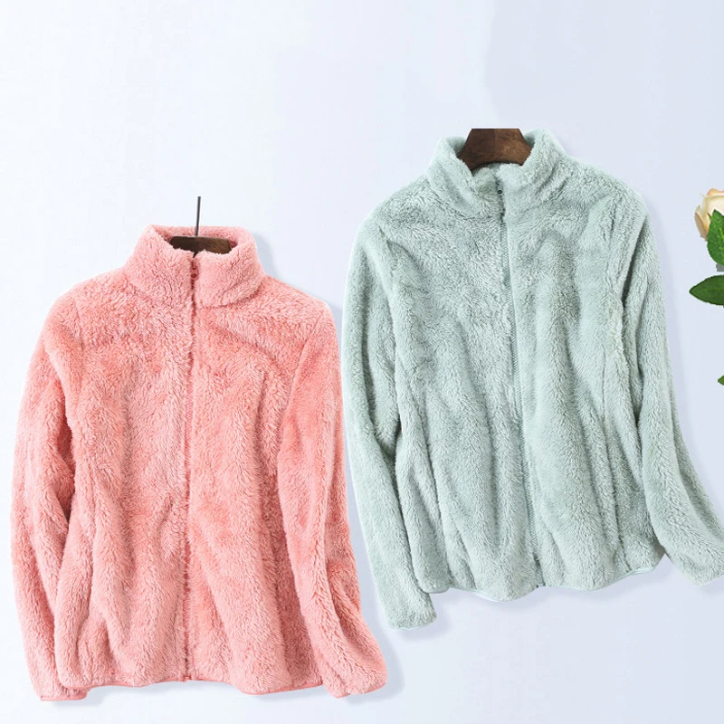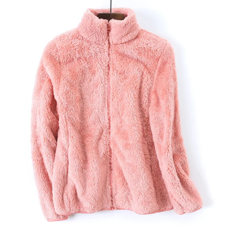 Новинка зимы 2020, Женская утолщенная теплая куртка из флиса кораллового цвета, простое однотонное женское повседневное пальто из флиса, женская одежда на молнии