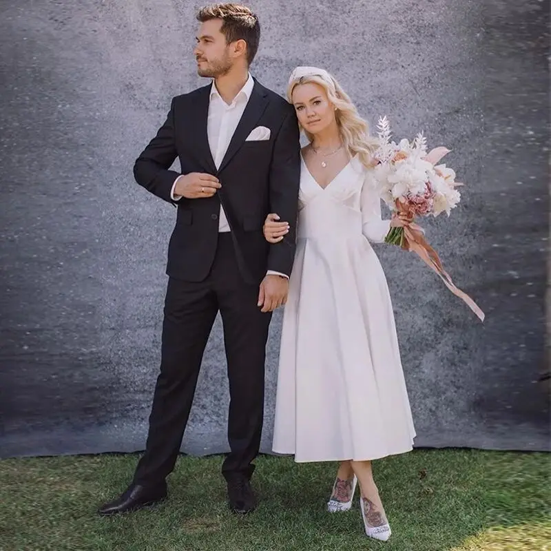 Женское атласное Короткое свадебное платье, элегантное атласное пла...