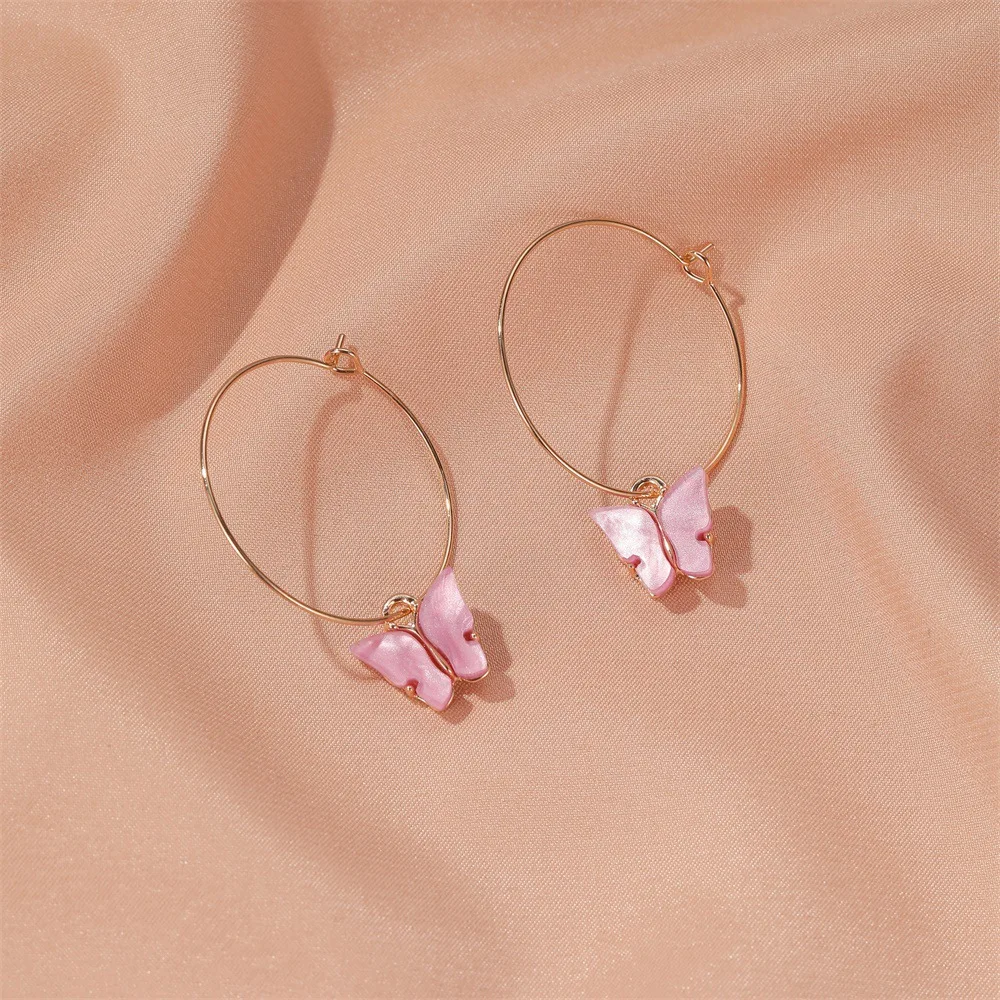 Серьги-подвески в Корейском стиле женские, простые акриловые большие круглые украшения для пирсинга в виде бабочки, симпатичные украшения для завитка ушной раковины