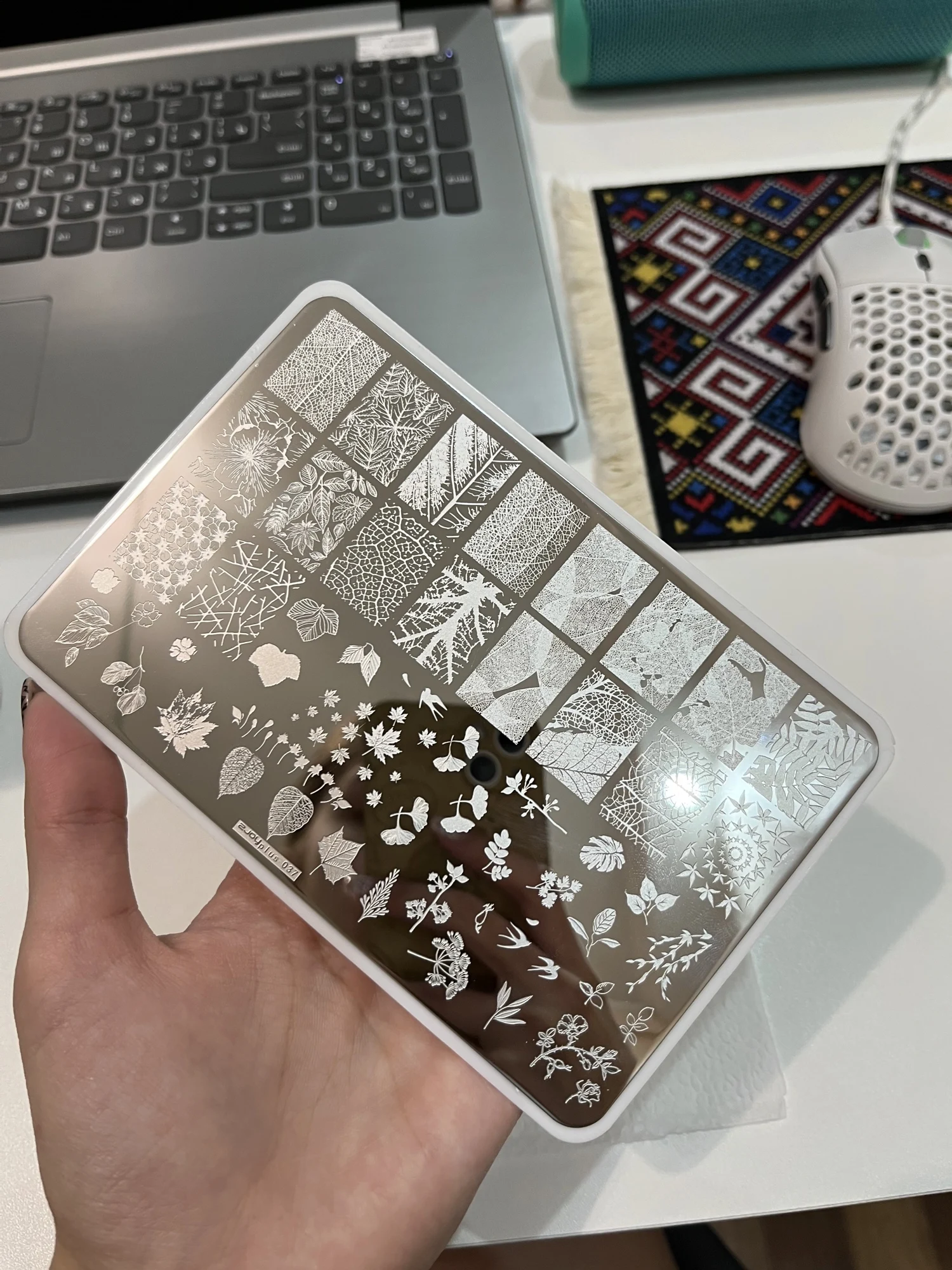 Внимание: штампованные пластины не работают с обычными полировочными покрытиями. Вам нужно использовать лак для штамповки пластин, иначе дизайн не будет передан.