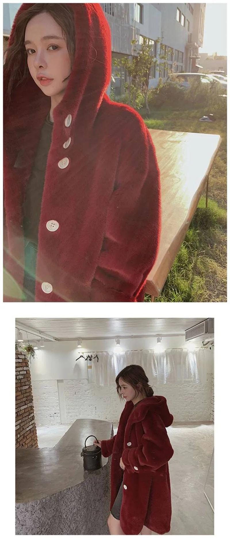 Новинка зимы 2020, имитация норки, бархатная куртка с капюшоном, средней длины, Корейская версия, свободная Толстая Женская норковая шуба
