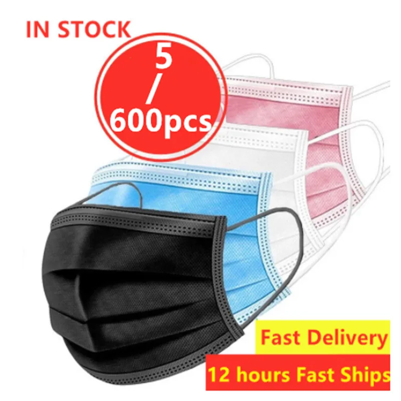 Маски одноразовые трехслойные с фильтром, черные, розовые, дышащие, 600, 5-маска для лица для взрослых шт.