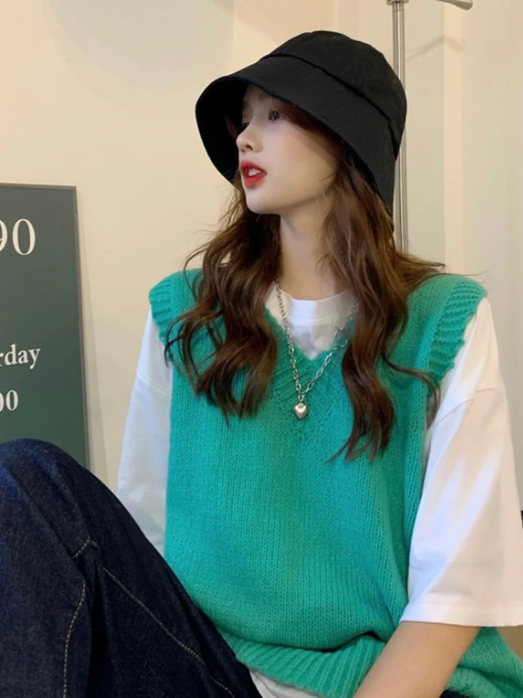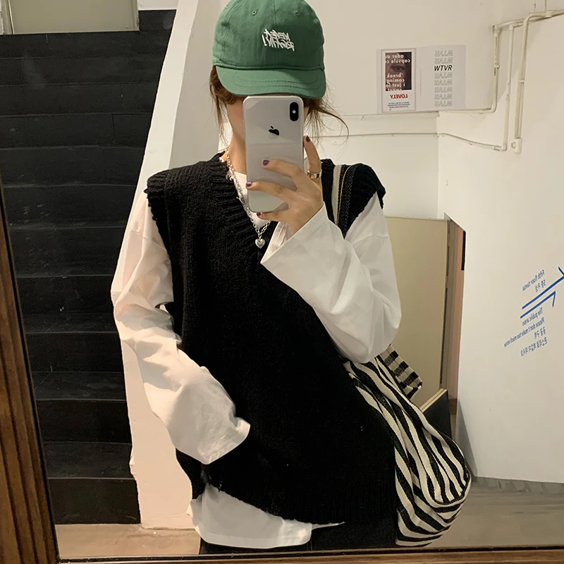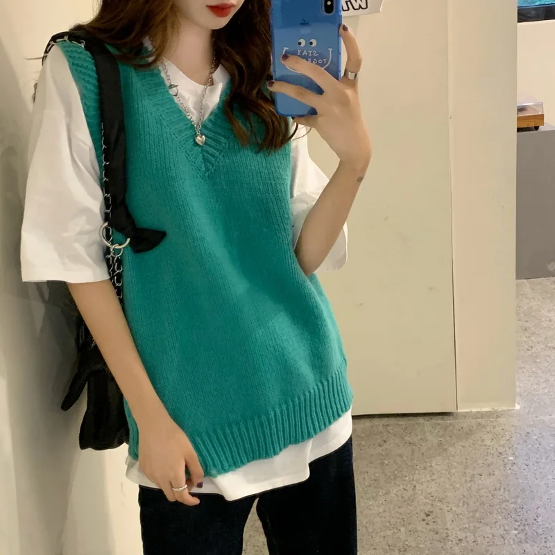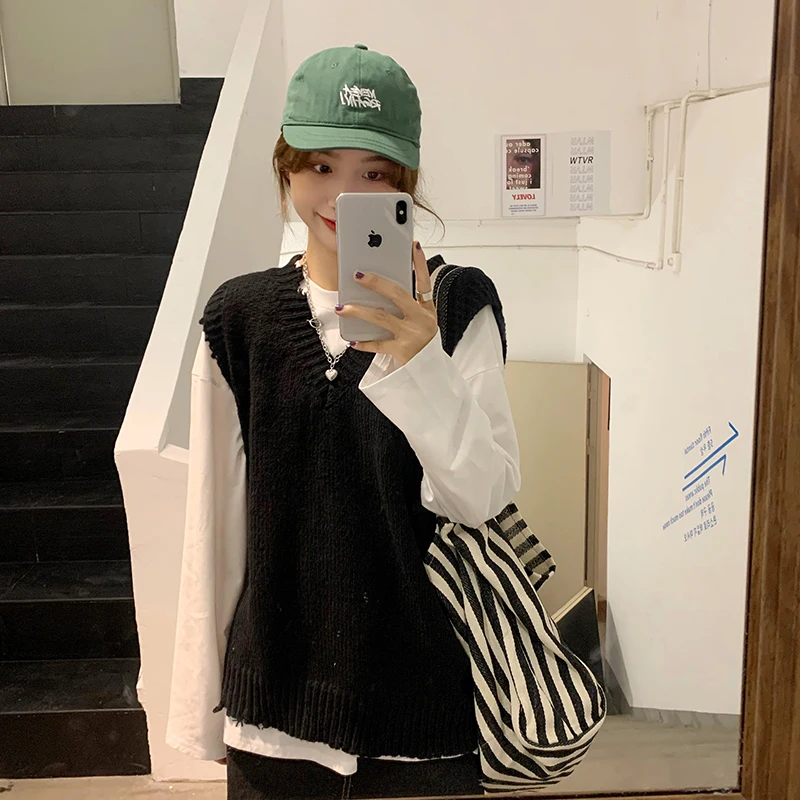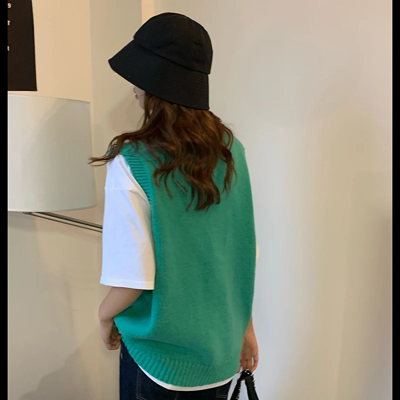 2020 трикотажный женский однотонный Классический Стильный ретро-свитер Ulzzang с V-образным вырезом Универсальный уличный свободный женский новый свитер жилеты