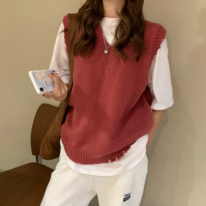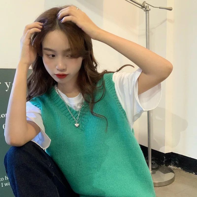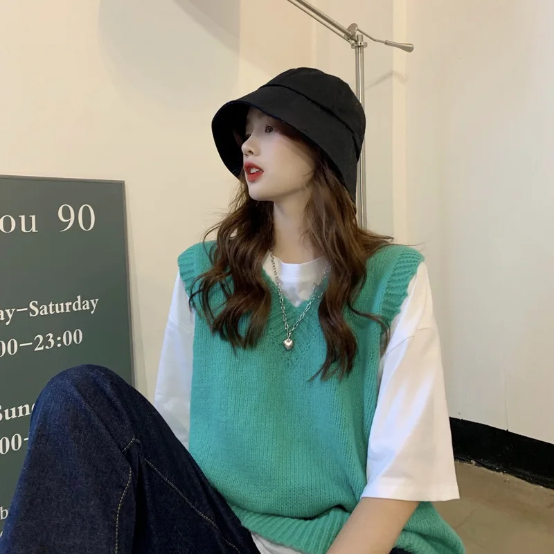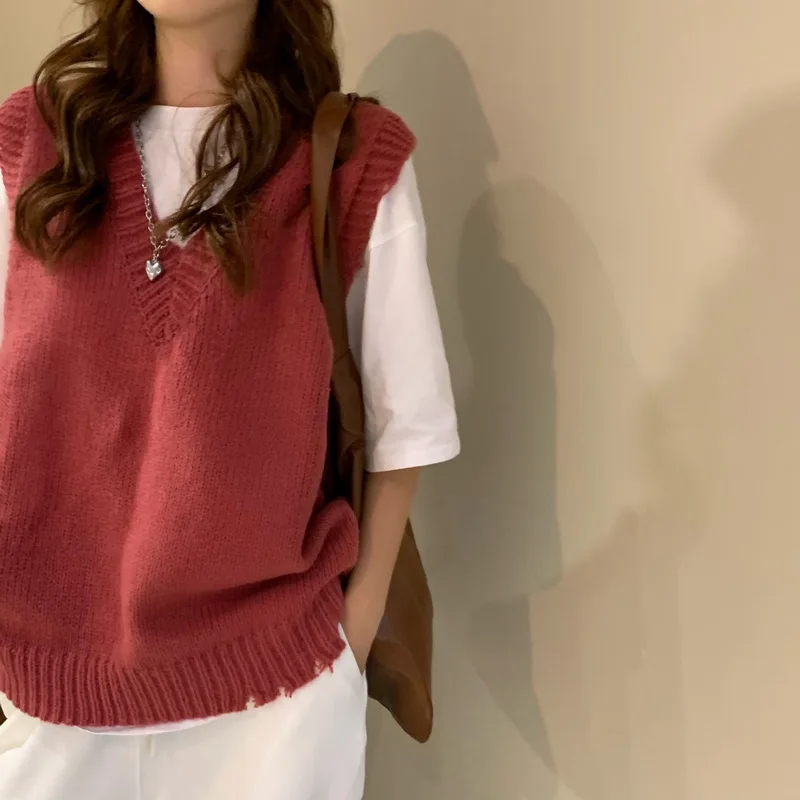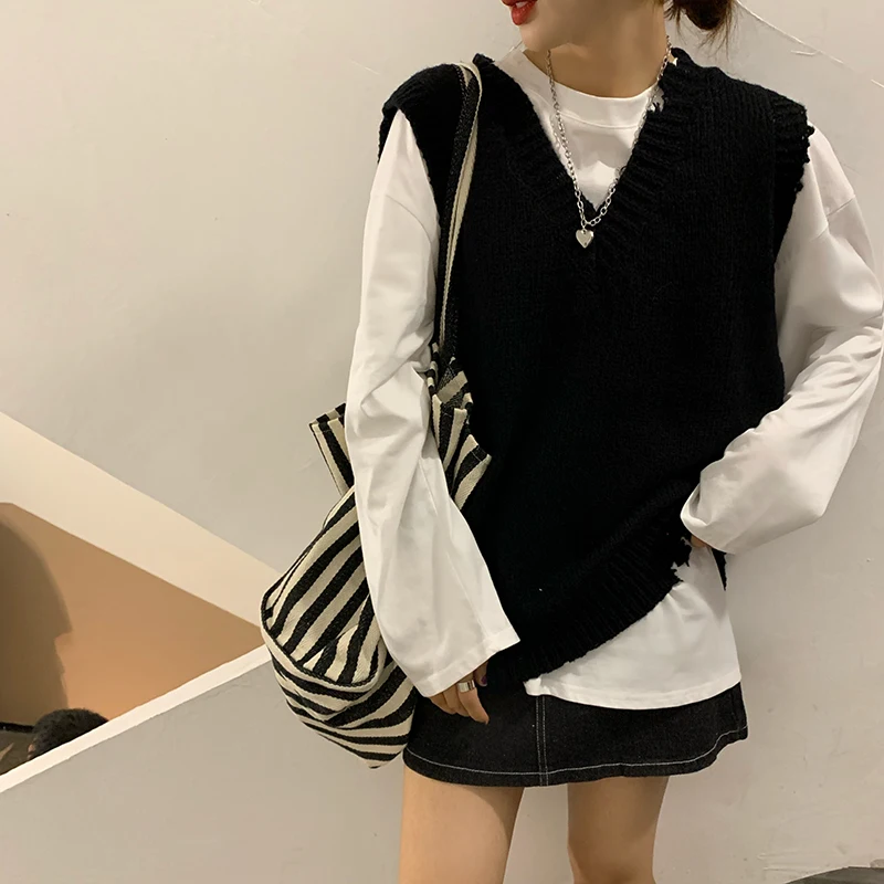 2020 трикотажный женский однотонный Классический Стильный ретро-свитер Ulzzang с V-образным вырезом Универсальный уличный свободный женский новый свитер жилеты