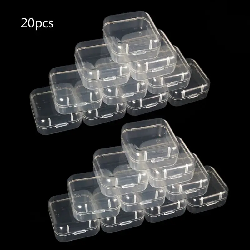20 шт квадратные мини прозрачные пластиковые контейнеры для хранения с крышками для мелких предметов