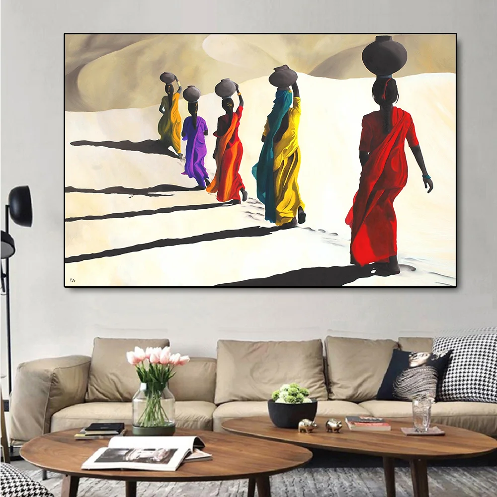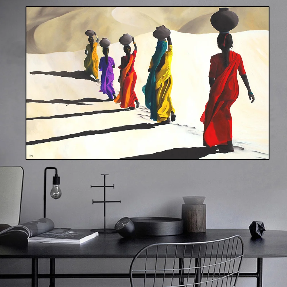 Африканская женщина, прогулка по пустыне, Картина на холсте, плакаты и принты, скандинавский холст, искусство на стену, картина для декора гостиной