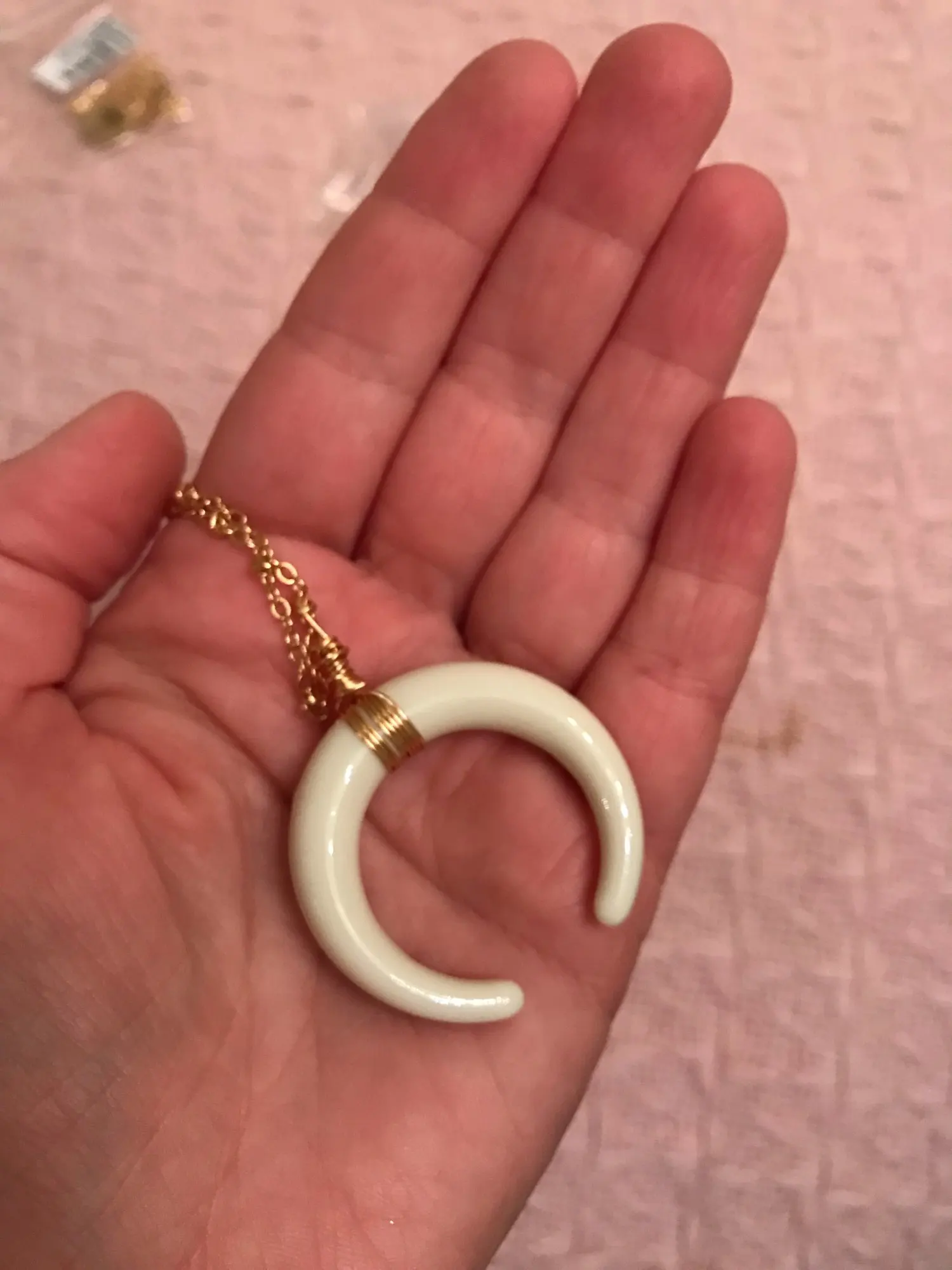 Получила подвеску,прикольная)Думала будет стекляшка перламутровая,а оказалось пласмаска но тоже норм за такие деньги)На лето под что-то подойдёт.