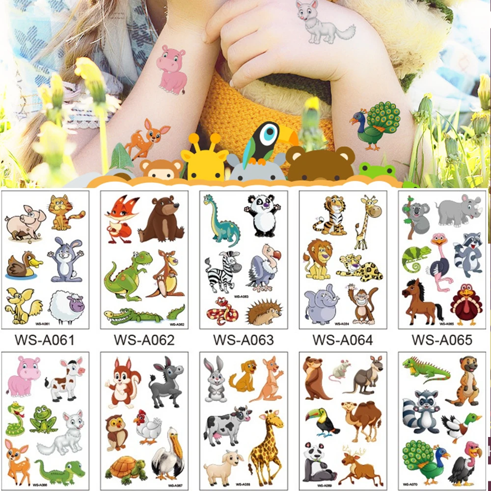 10 видов мультяшных татуировок с животными, милые детские для прогулок, пикника, макияжа, временные татуировки для тела на руку, Одноразовые наклейки, временные татуировки
