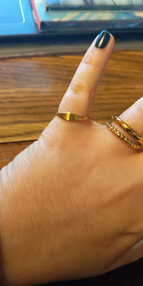 Очень легкий продукт, не похож на классическое кольцо из нержавеющей стали, но цвет, кажется, не двигается. Я купил два кольца, круглая крутая, но квадрат действительно слишком дешевый