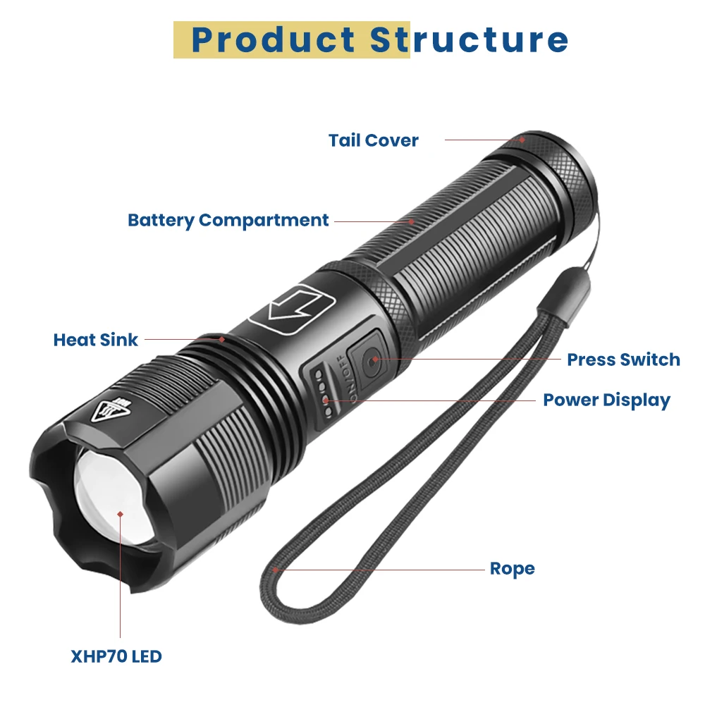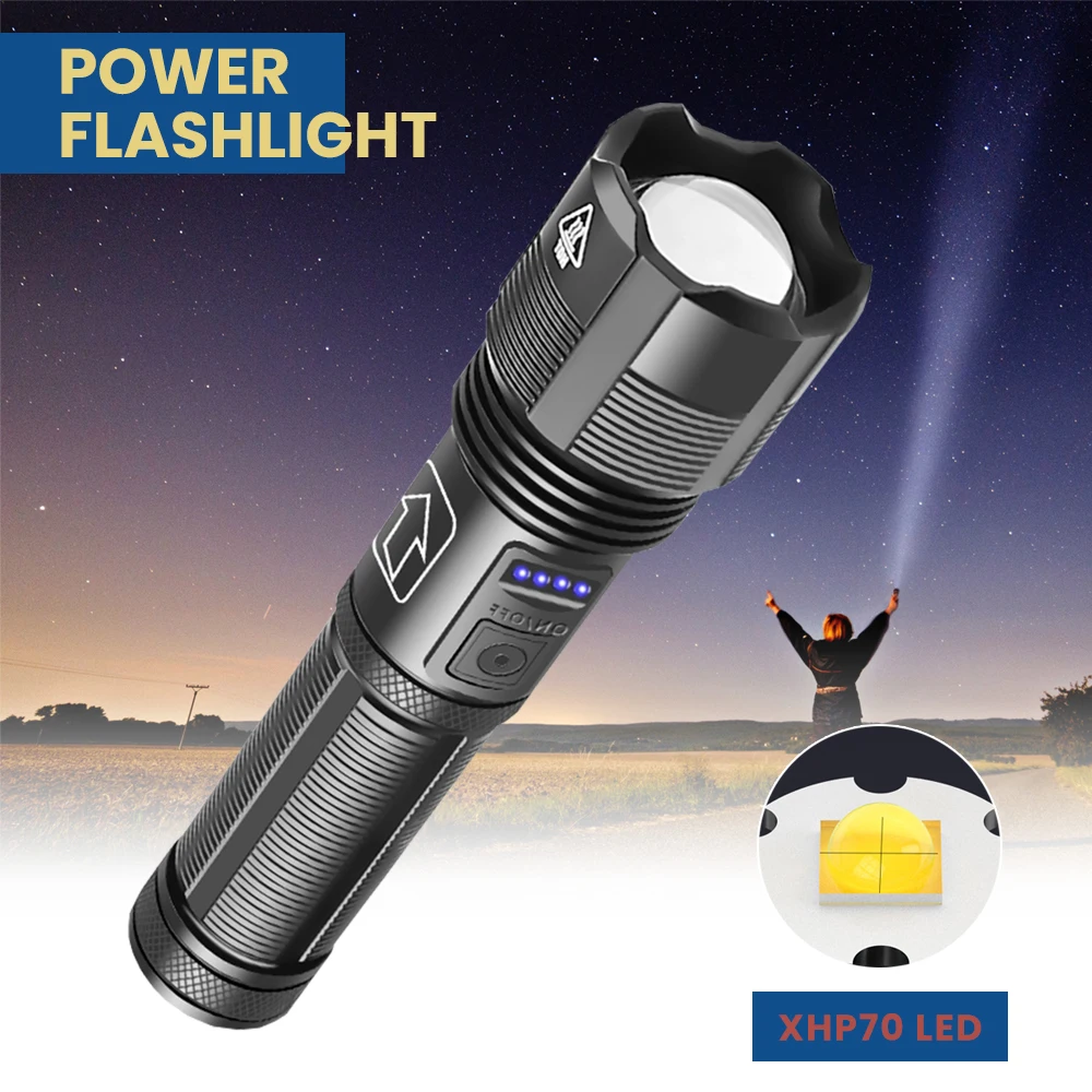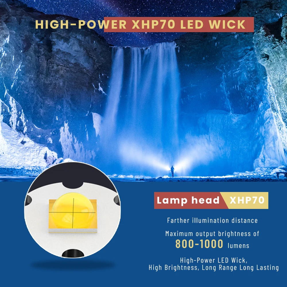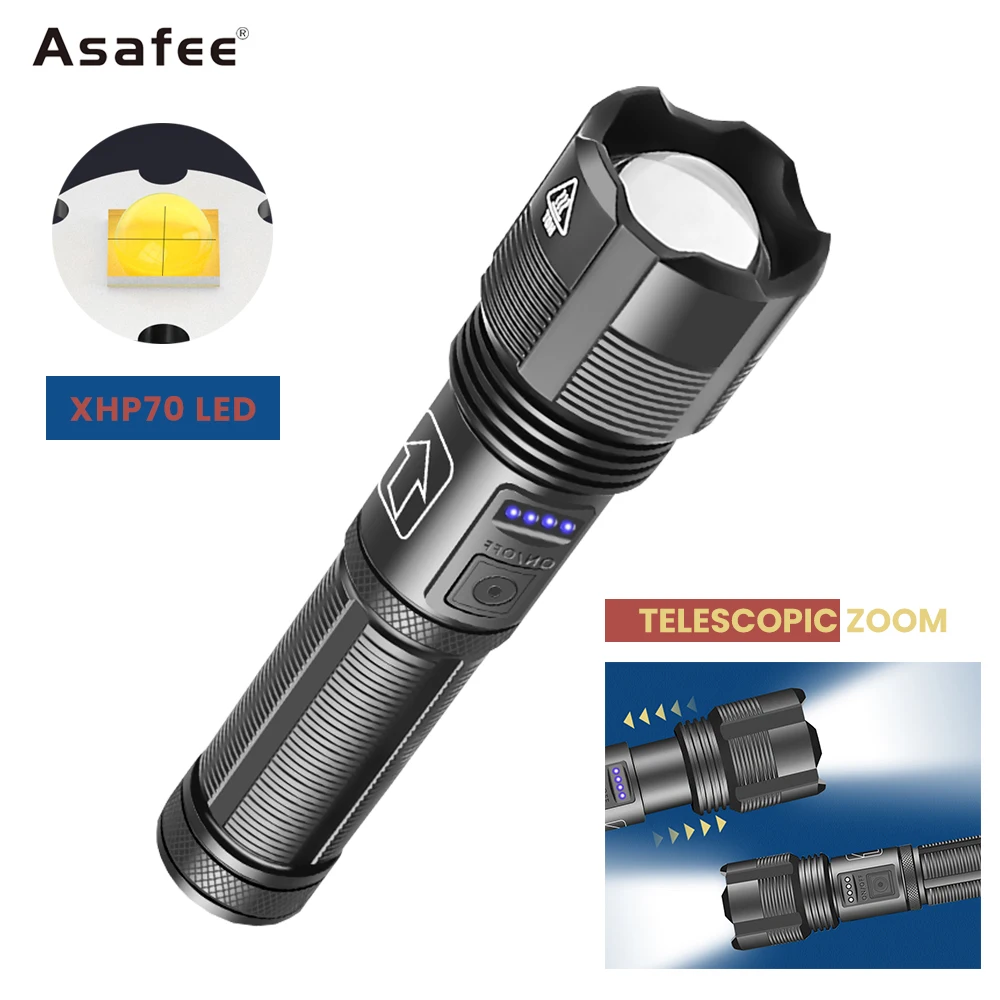 Светодиодный фонарик высокой мощности XHP70, USB Перезаряжаемый Фонарик 1000 лм, водонепроницаемый фонарик, регулируемый фонарик для фотоохоты